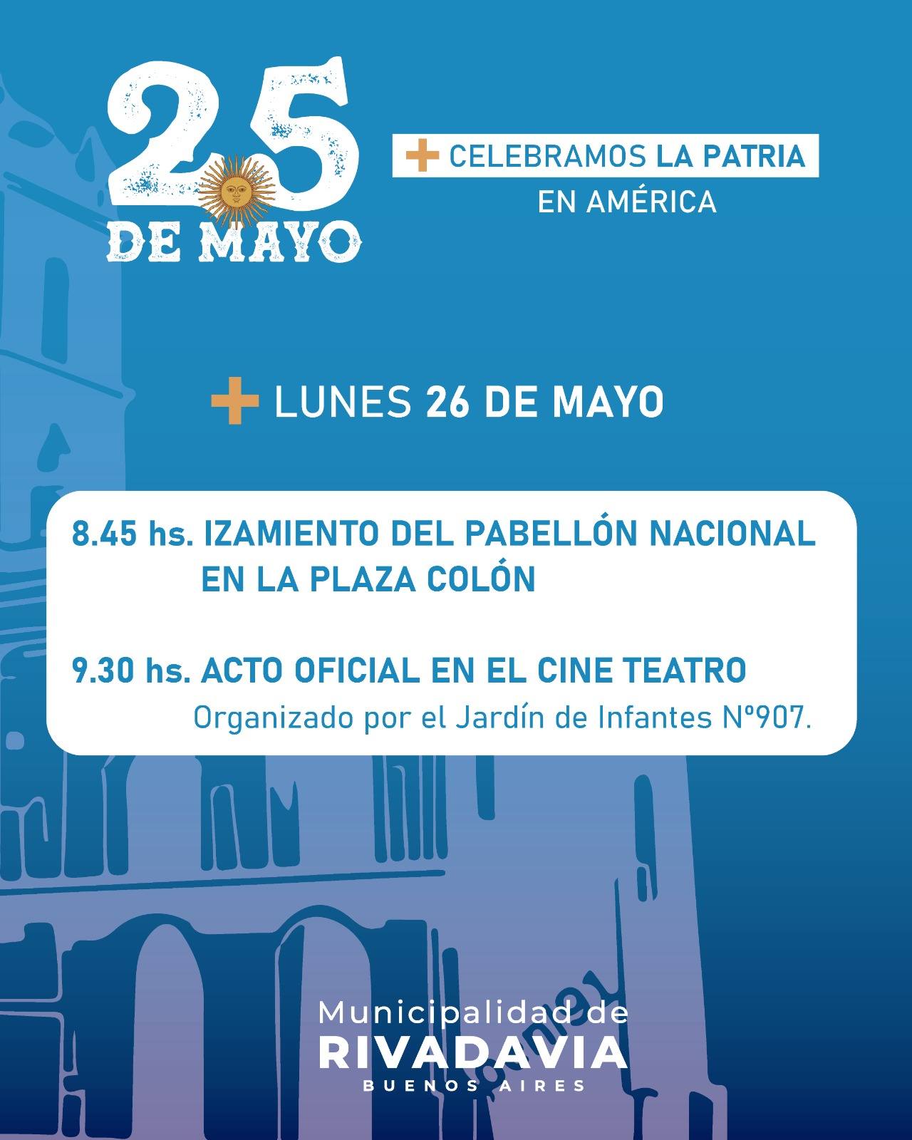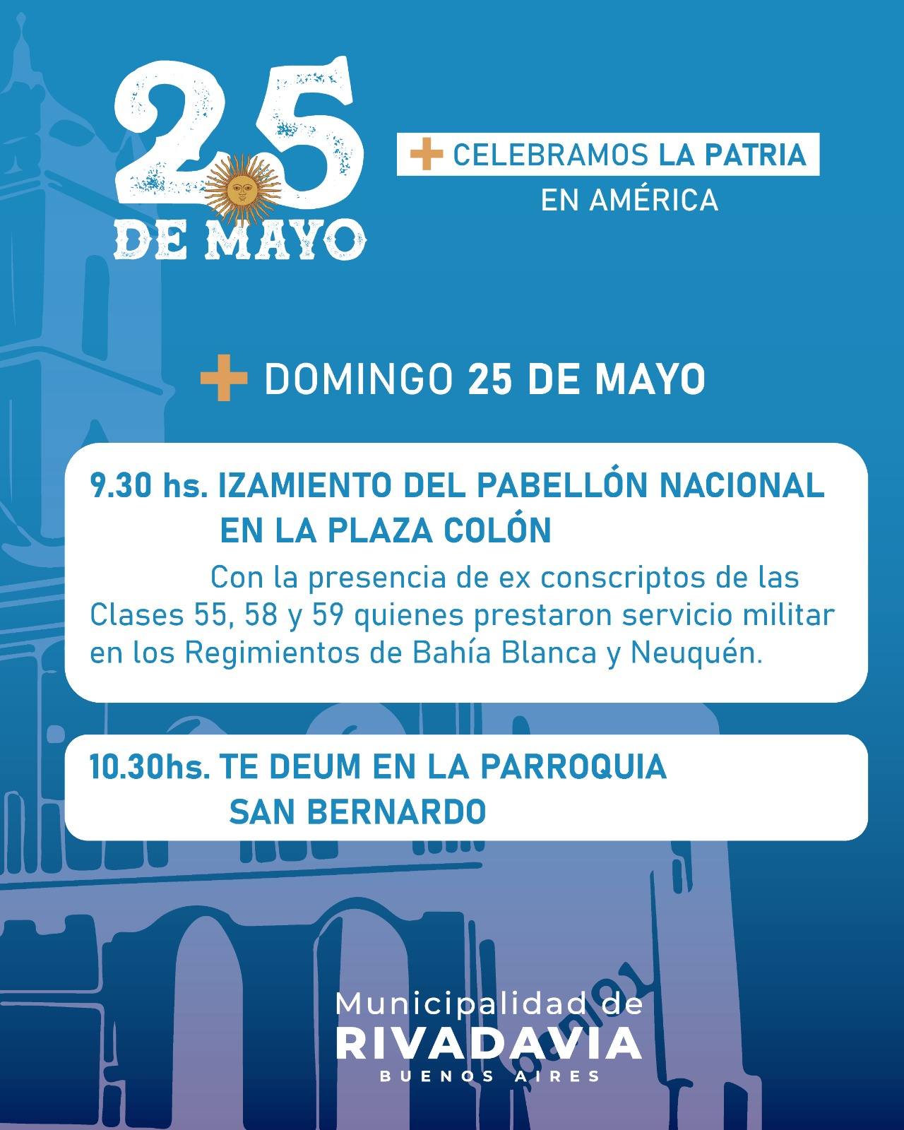 🇦🇷 La Municipalidad de Rivadavia te invita a vivir una jornada llena de tradición, historia y alegría. Este domingo 25 de mayo, compartí en familia una variedad de actividades pensadas para todas las edades🇦🇷.