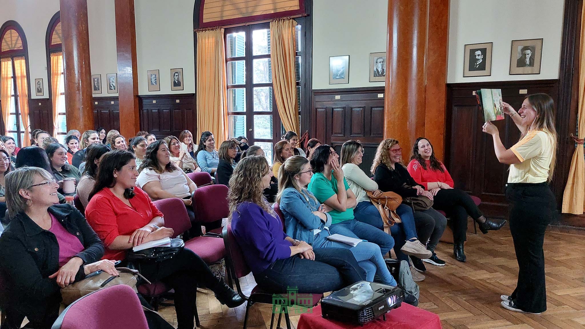 🗣️ En el marco de la finalización del Mes de la Educación, el Salón Dorado fue escenario de la capacitación titulada “El abordaje de los lenguajes artísticos en nivel inicial”, liderada por la Lic. Eliana Bratok.