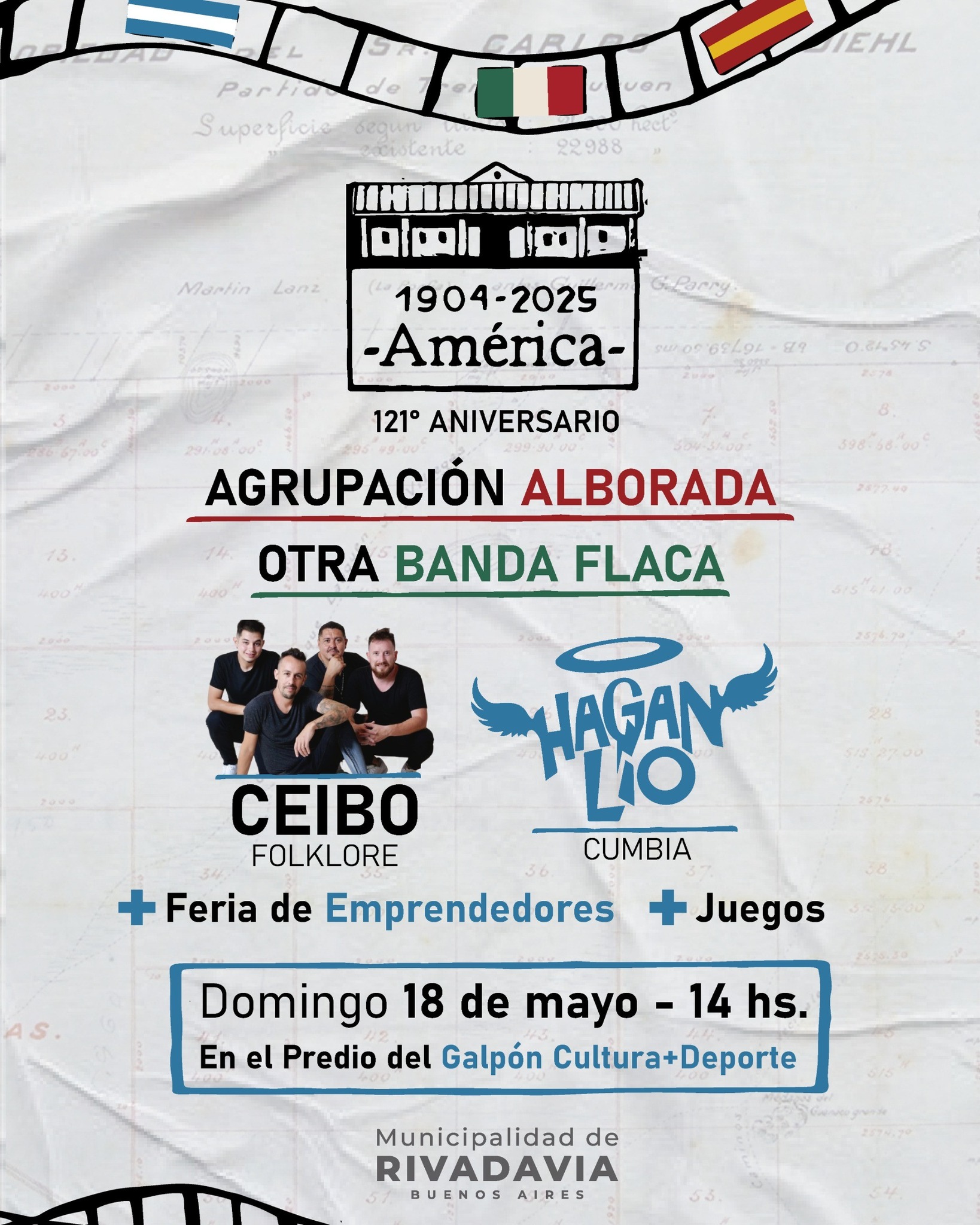 🎉Este 16 de mayo, la ciudad de América cumple 121 años de su creación, y lo vamos a celebrar a lo grande con música, literatura, espectáculos y mucho más.