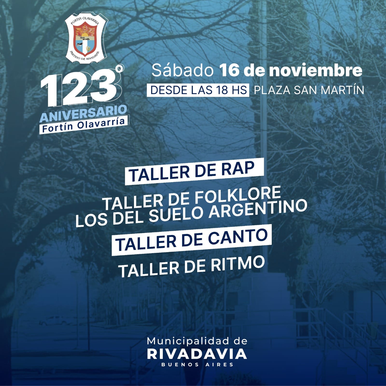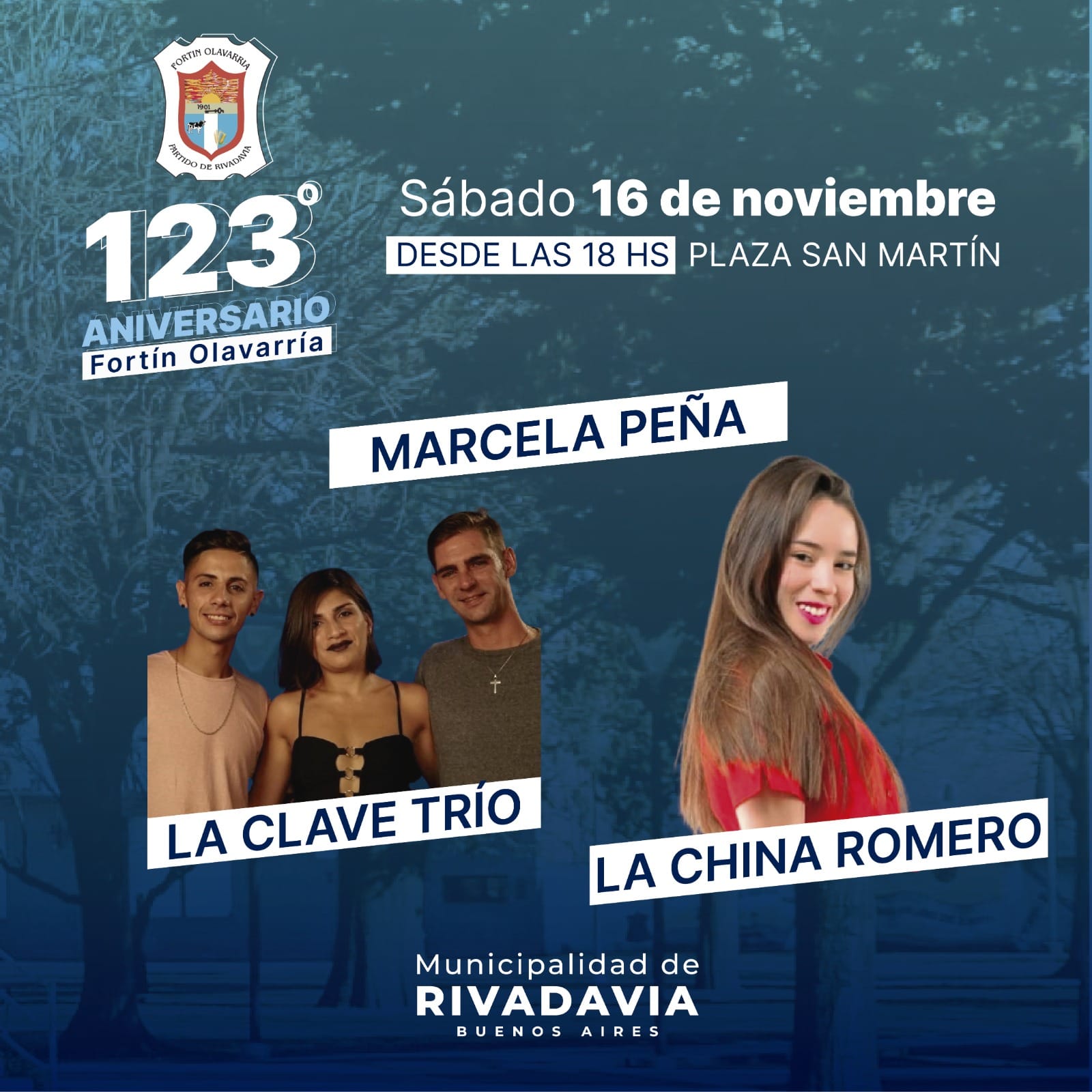 🥳 El sábado 16/11 celebramos un nuevo aniversario de la localidad de Fortín Olavarría, en la Plaza San Martín a partir de las 18 hs.