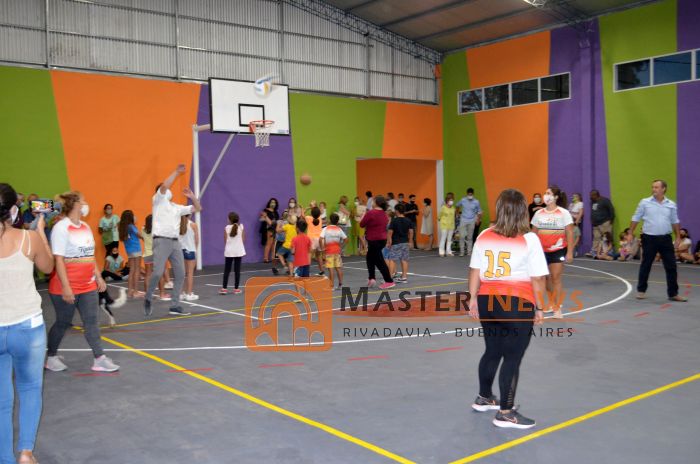 Fue el Intendente Javier Reynoso quien inauguro la multi cancha con el clásico “triple” en el aro de basquet, deporte del cual es seguidor el mandatario comunal. Después hubo tiempo para un partido de Voley donde se “destaco” la participación del Delegado Fabio Aurnague.