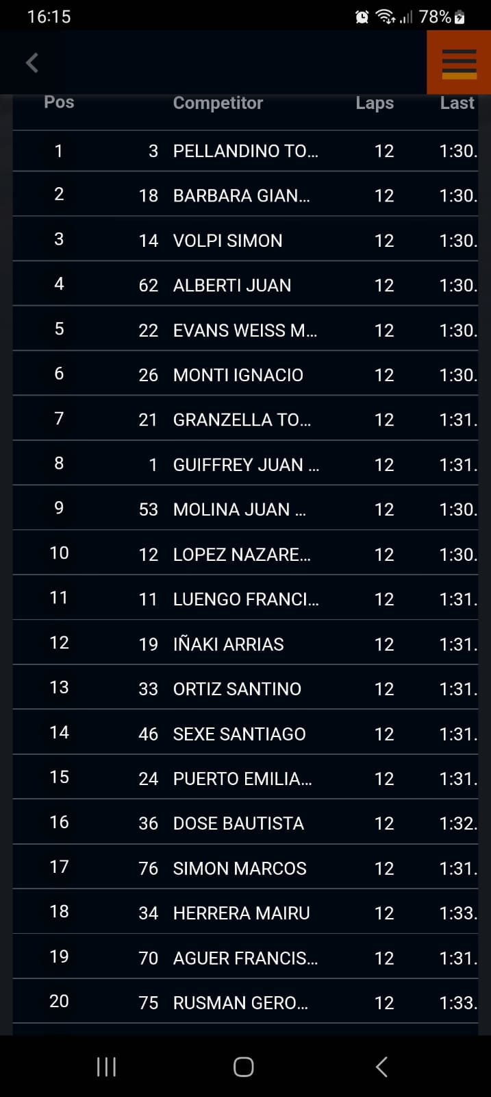 Según contaron a Master News desde el Rusman Juniors “Geró tuvo un despiste al final de la recta (lo tocaron de atrás en la rueda trasera derecha) después recuperó. En la carrera hubo varios toques, incidentes de los cuales por suerte no participó de ninguno de los graves. El auto llegó entero y espera por la carrera del domingo ahora”