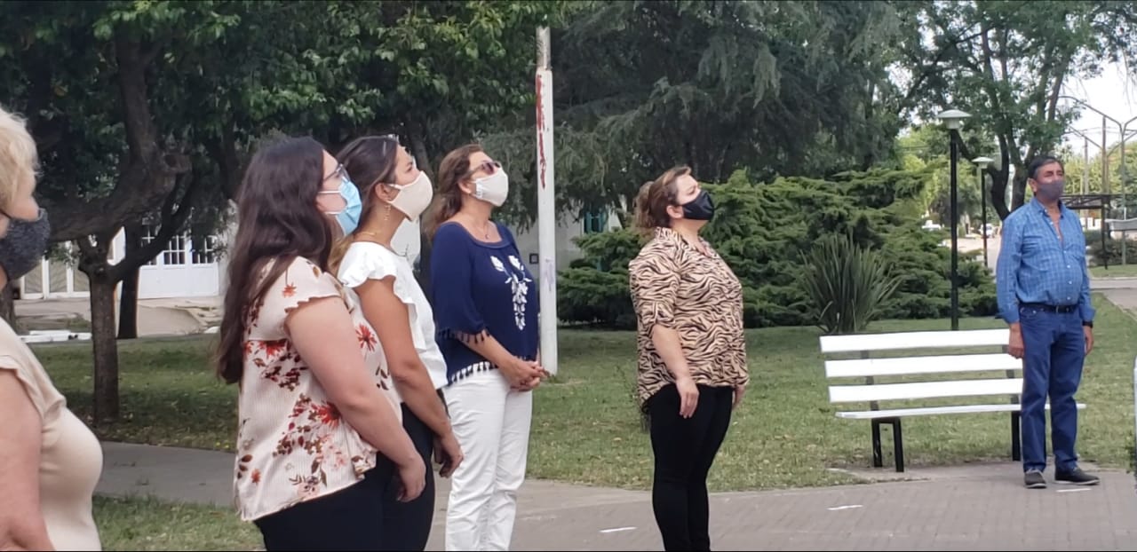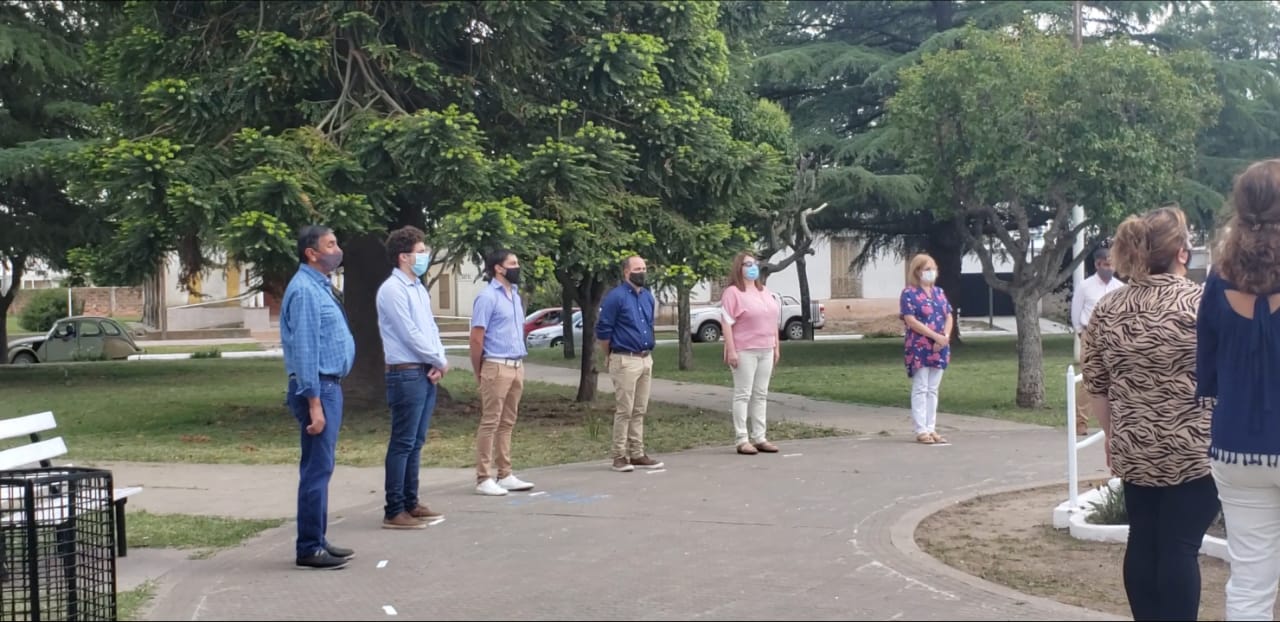 El acto protocolar fue muy breve y con muy poca gente para cumplir con los protocolos vigentes. Asistieron el Intendente Municipal Javier Reynoso, la Delegada Patricia Bascal, concejales, consejeros escolares y algunos funcionarios del gabinete. Quedó la sensación que cada habitante acompaño desde su domicilio pensando quizás en los festejos que no pudieron ser pero que seguramente el año entrante si se harán.