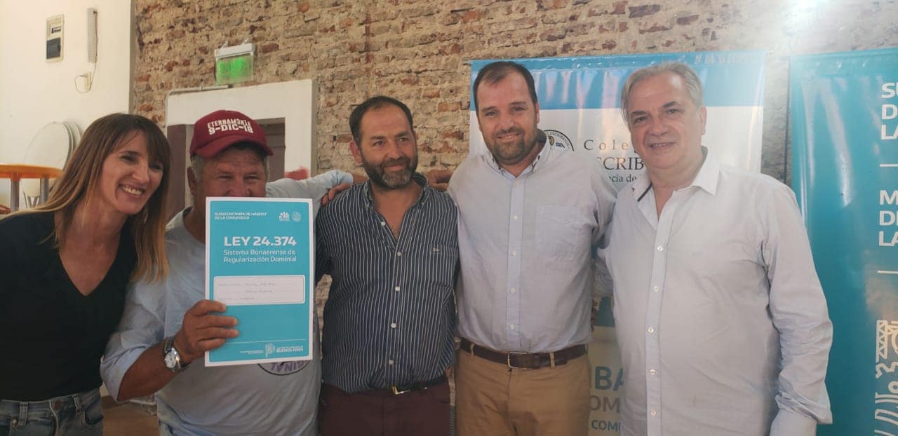 Finalmente, por la tarde, el Intendente Reynoso y el Delegado local hicieron entrega de 13 escrituras, en cumplimiento a la Ley N°24.374 de Regularización Dominial (Ley Pierri), en articulación con la Subsecretaría de Hábitat de la Comunidad del Gobierno de la Provincia de Buenos Aires.