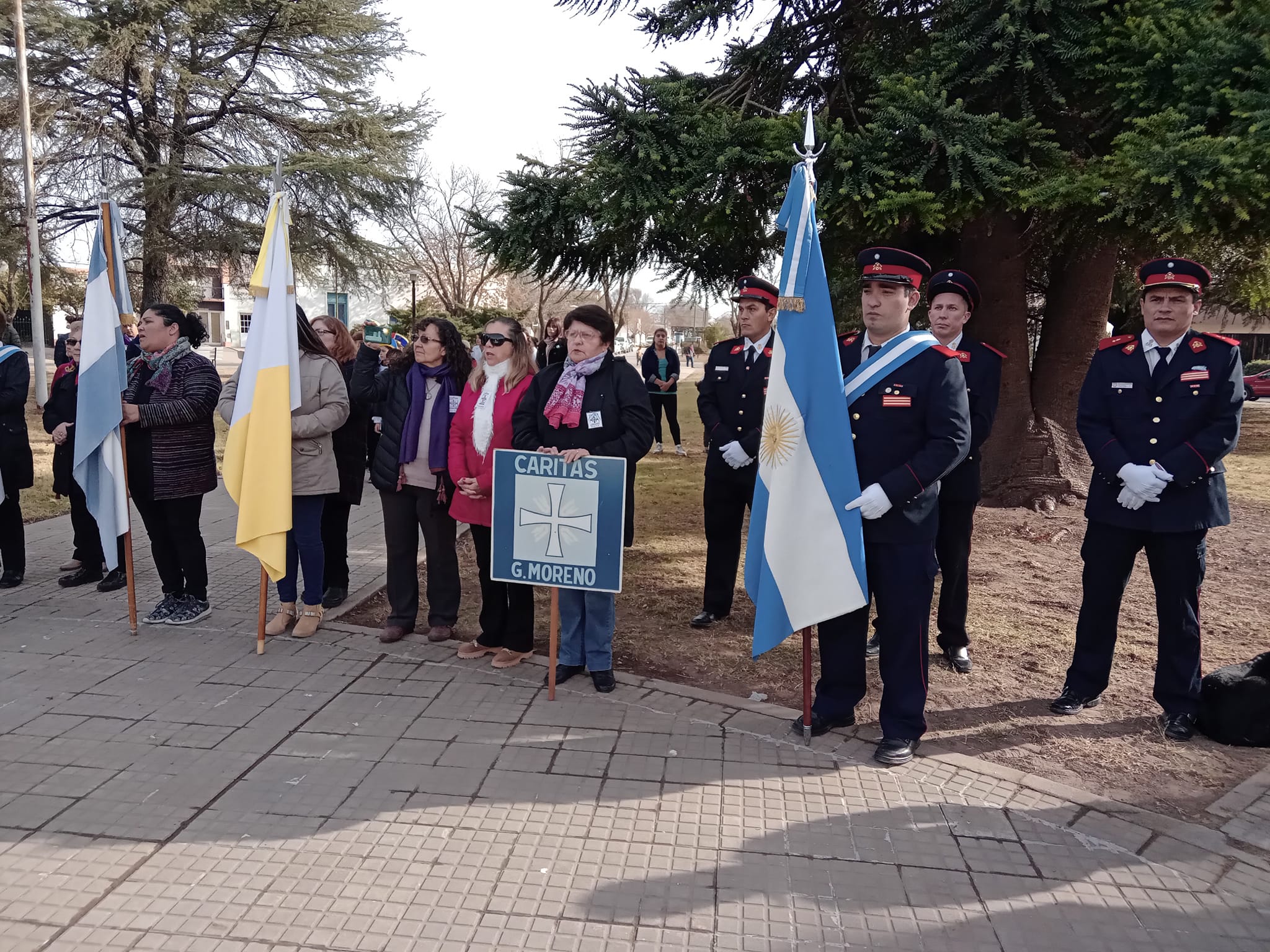 Se entonó el Himno Nacional Argentino y el Padre Juan Carlos Maturana dirigió una oración por nuestra Patria