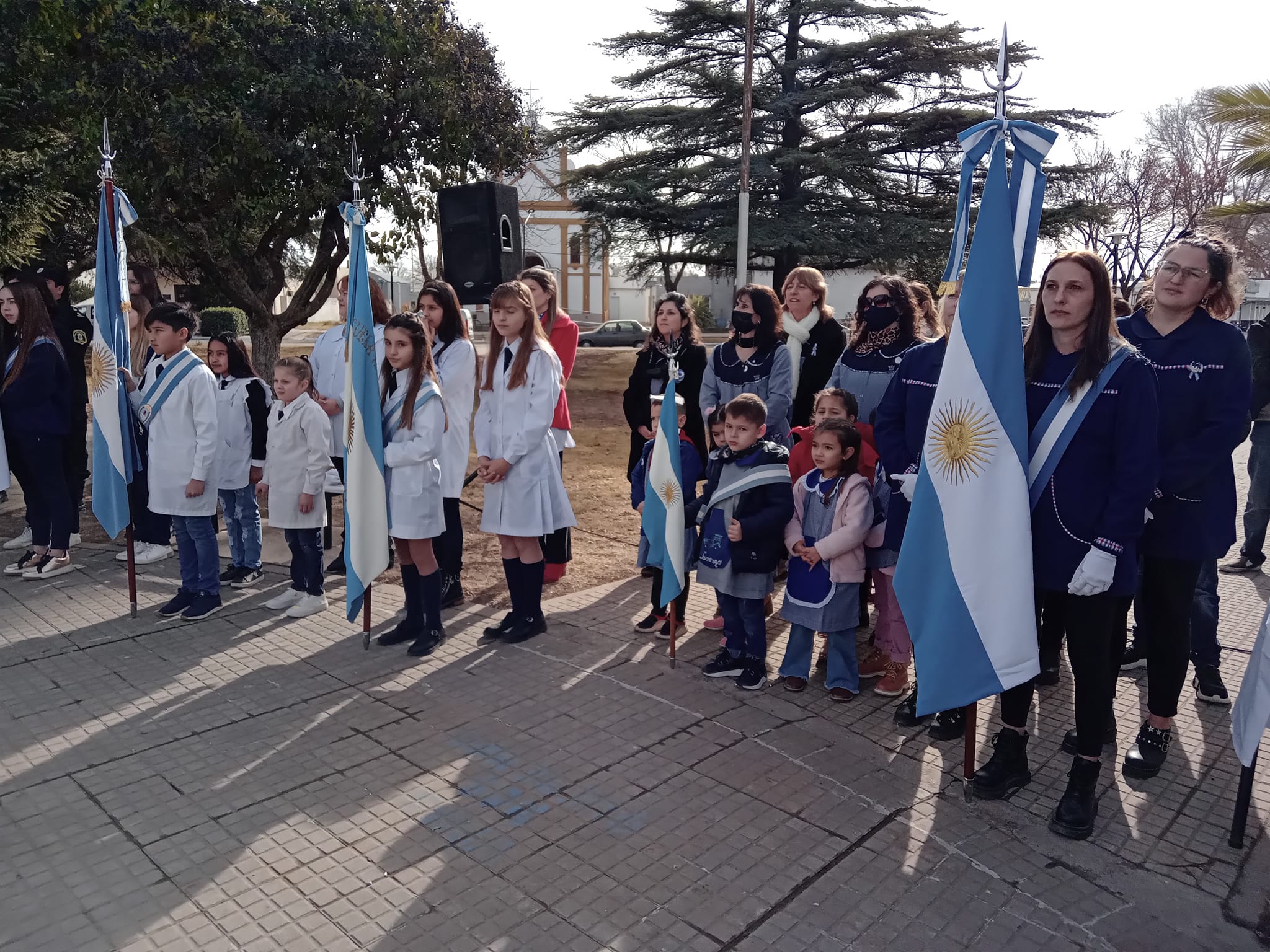 Este lunes 20 de junio se realizó en la Plaza Manuel Belgrano de la localidad el acto protocolar conmemorando los 202 años del fallecimiento del creador de la enseña patria. Allí los alumnos de 4° año de la escuela primaria juraron ante el símbolo patrio.-