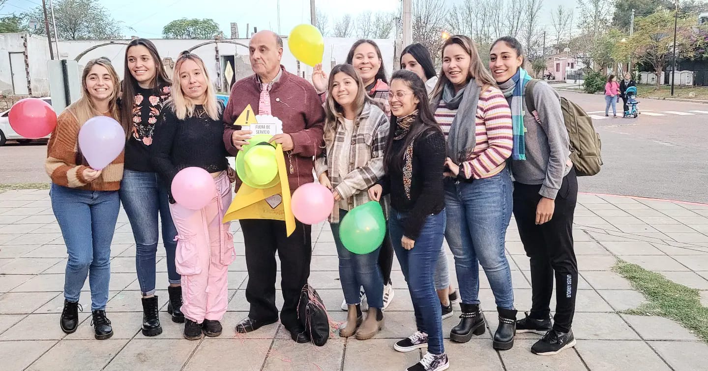 El profesor Héctor García vivió este martes 30 de mayo un día muy especial con la despedida del sistema educativo con momentos muy emotivos que sus compañeros y alumnos habían preparado en el ISFD N° 64 de Rivadavia.