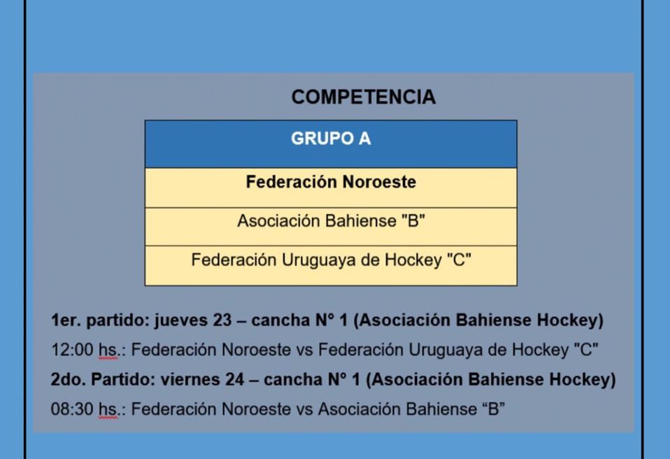El equipo del Noroeste tendrá su debut el jueves 23 a las 12:00 hs en la cancha N° 1 donde enfrentará a Federación Uruguaya de Hockey C.