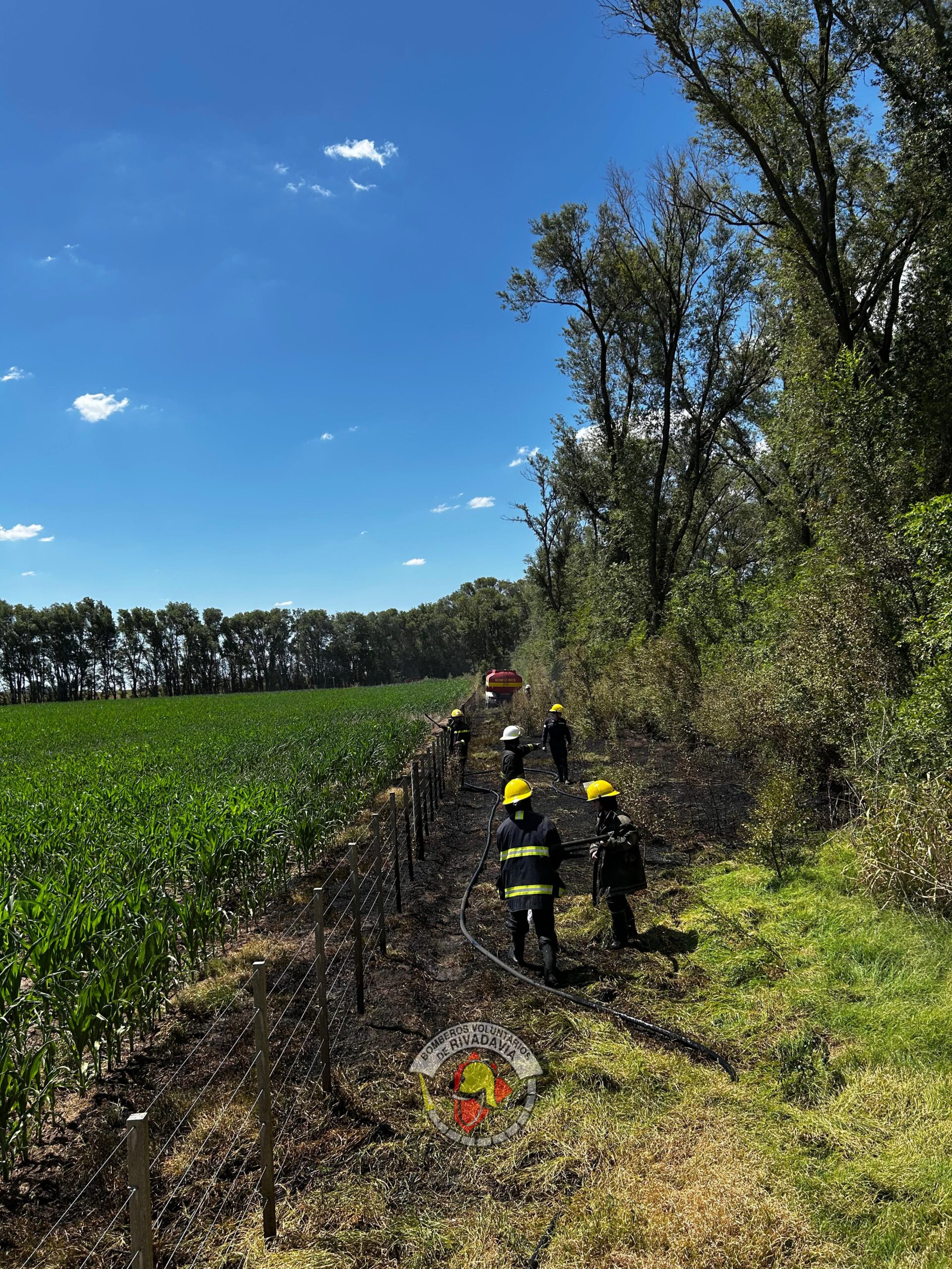 El domingo cerca de las 14:30 horas personal de comisaría local dio aviso al cuartel de Bomberos de Rivadavia de incendio forestal a un lado de la ruta Nacional 33 km 378, en dirección Fortin Olavarría.