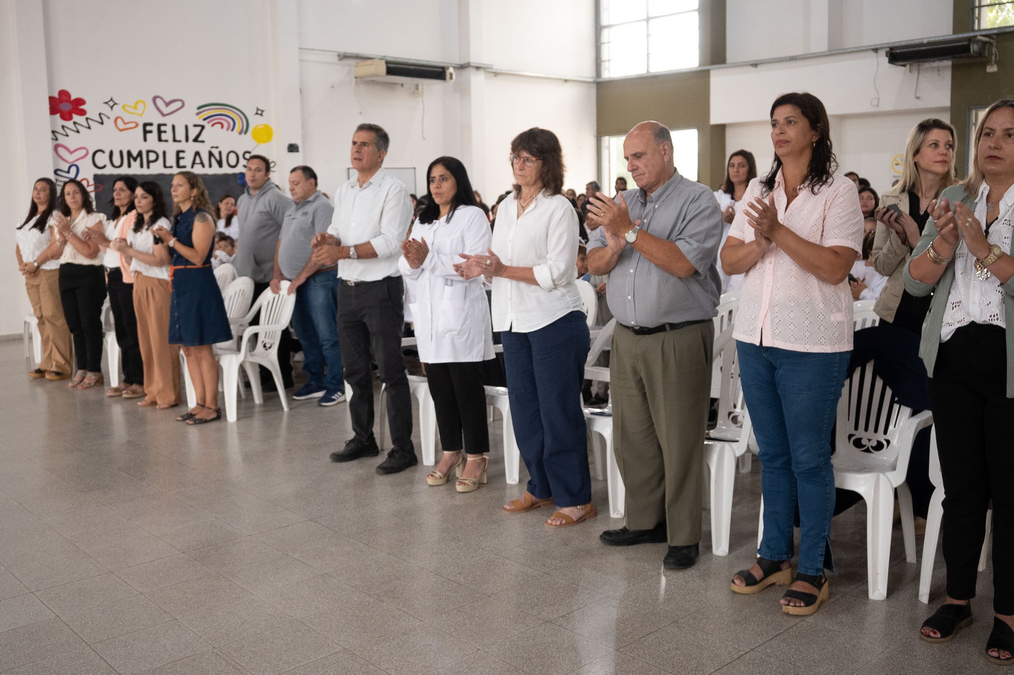 Estuvieron presentes en el acto la directora de Educación Municipal, Mercedes García Duperou; la inspectora jefa distrital, Marta Cucurull, junto a inspectoras de área; el presidente del Honorable Concejo Deliberante, Héctor García, y señores concejales; la presidenta del Consejo Escolar, Daniela Vázquez y consejeros; funcionarios municipales y demás autoridades educativas.