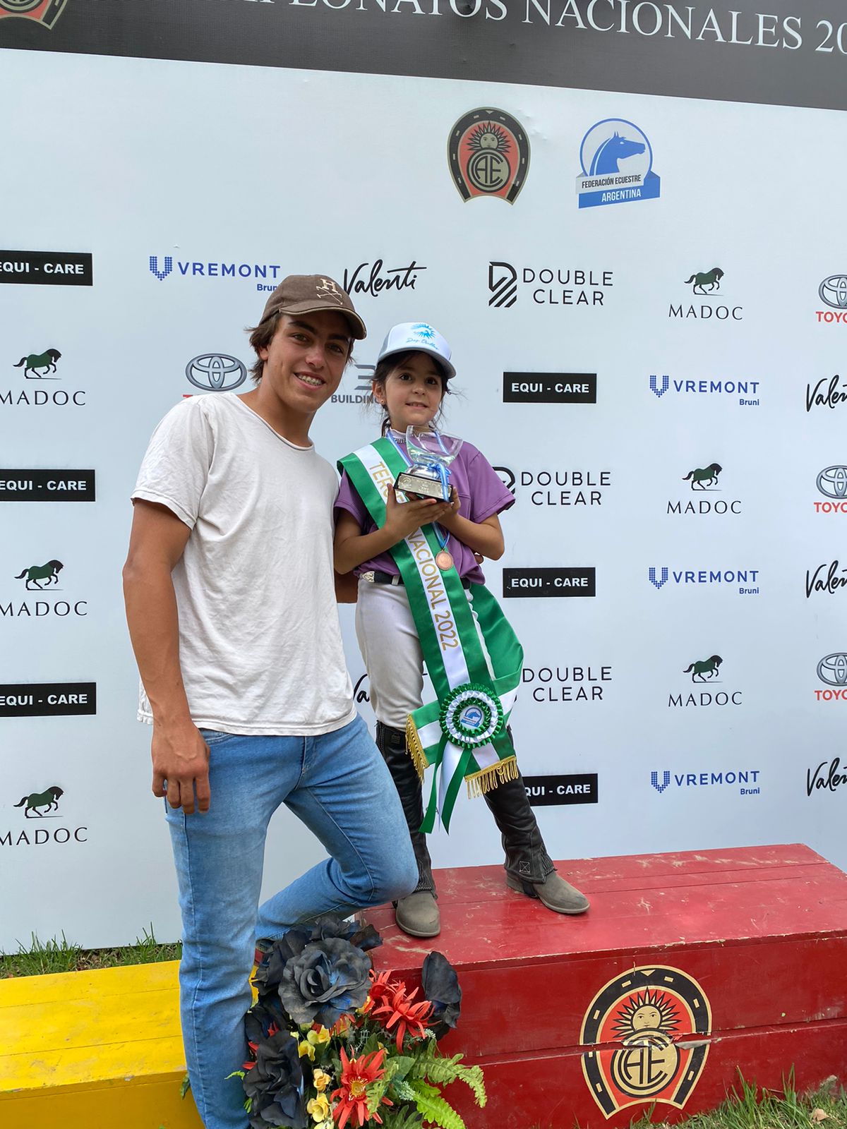 La amazona Blanca Lopez Rosaschi junto a JM Negrita y su profesor Clemente Cervera llegaron a participar del Campeonato Nacional Categoria Pony que se llevó a cabo en el club Alemán de Equitación de la ciudad de Buenos Aires.