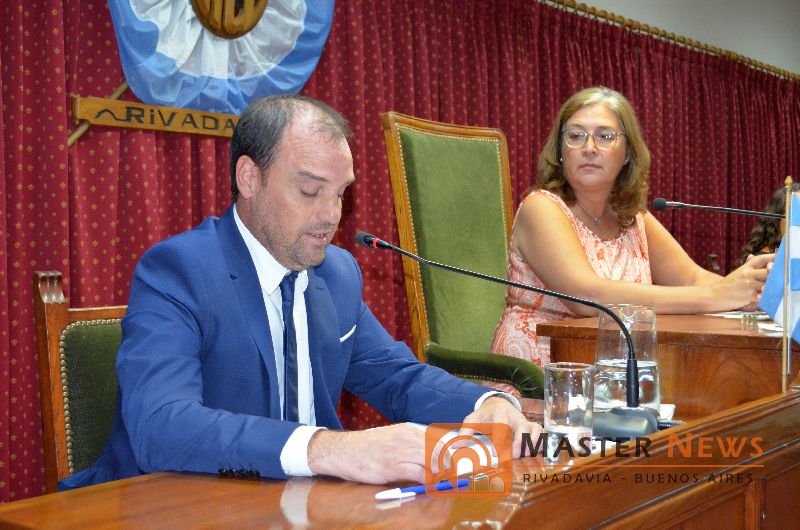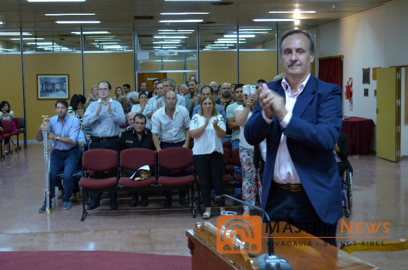 La presidente del Concejo Deliberante, Marcela Lescano encabezó el acto en el recinto que lució con una gran acompanamiento de público y recibió al primer mandatario, que luego brindó su habitual discurso para dejar inaugurado el periodo de sesiones legislativas, su dicurso comenzó con agradecimientos “el más grande a los rivadavienses que creen, que trabajan y que confían en que podemos tener cada día un Distrito mejor. Muchas gracias por el apoyo y por las muestras de afecto que nos dan a diario, así como también por las exigencias y las demandas que nos presentan para seguir en ese camino”.