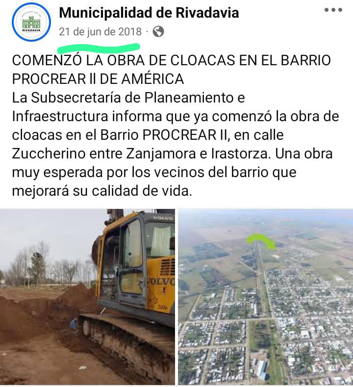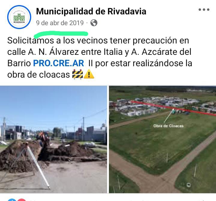 “Para desmentir la estrategia que tiene el gobierno municipal de mentir permanentemente. Hoy en la conferencia de prensa se dijo que la última obra de gas y cloacas se realizó en 2012. Bien, el Sr Culacciatti mintió. Hubo obra de gas en 2018 en el barrio Procrear II” dijo el edil.