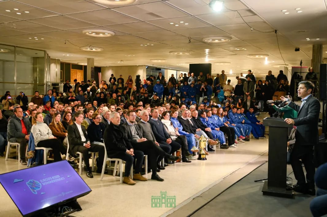 El lunes el intendente Municipal Juanci Martinez participó del acto de lanzamiento de los Juegos Bonaerenses (JJBB) 2024, encabezado por el gobernador de la provincia de Buenos Aires, Axel Kicillof, junto a los ministros de Desarrollo de la Comunidad, Andrés Larroque; y de Producción, Ciencia e Innovación Tecnológica, Augusto Costa; la presidenta del Instituto Cultural, Florencia Saintout; y el subsecretario de Deportes, Leandro Lurati.