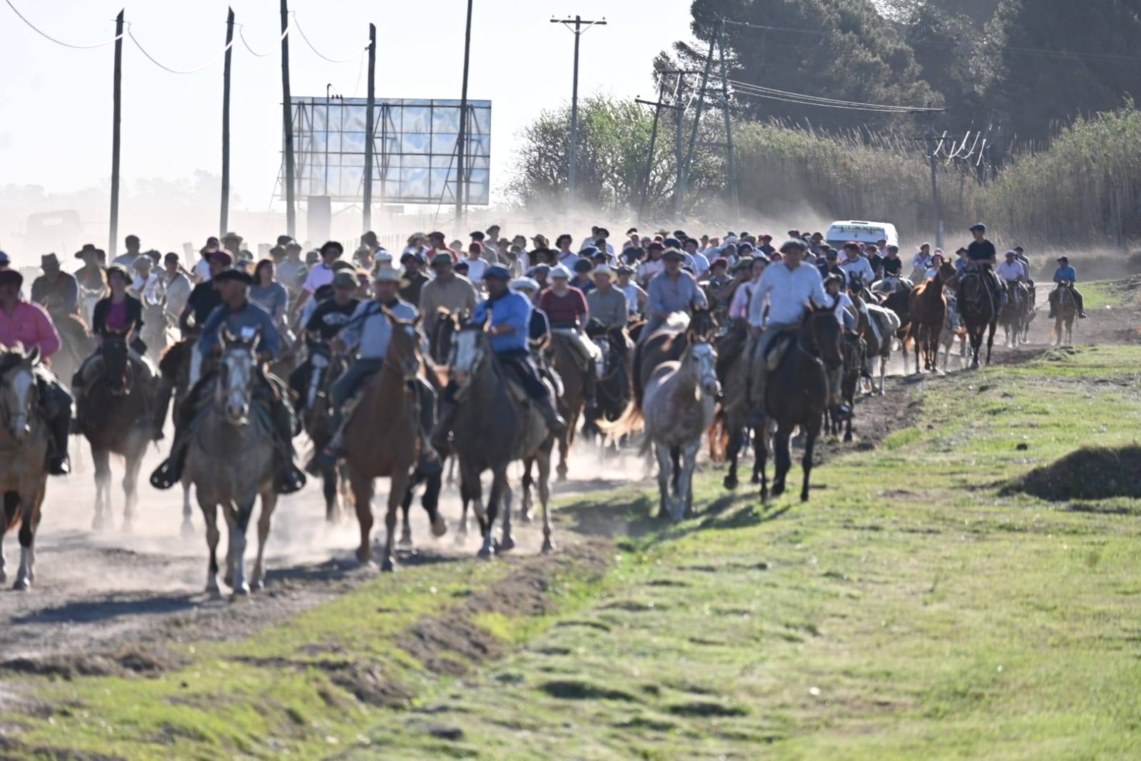 Continuando con su travesía la Cabalgata que recorre Rivadavia llegó este jueves por la tardecita a la localidad del Meridiano V. Un cartel colgado en la entrada a la localidad se llevó todos los comentarios