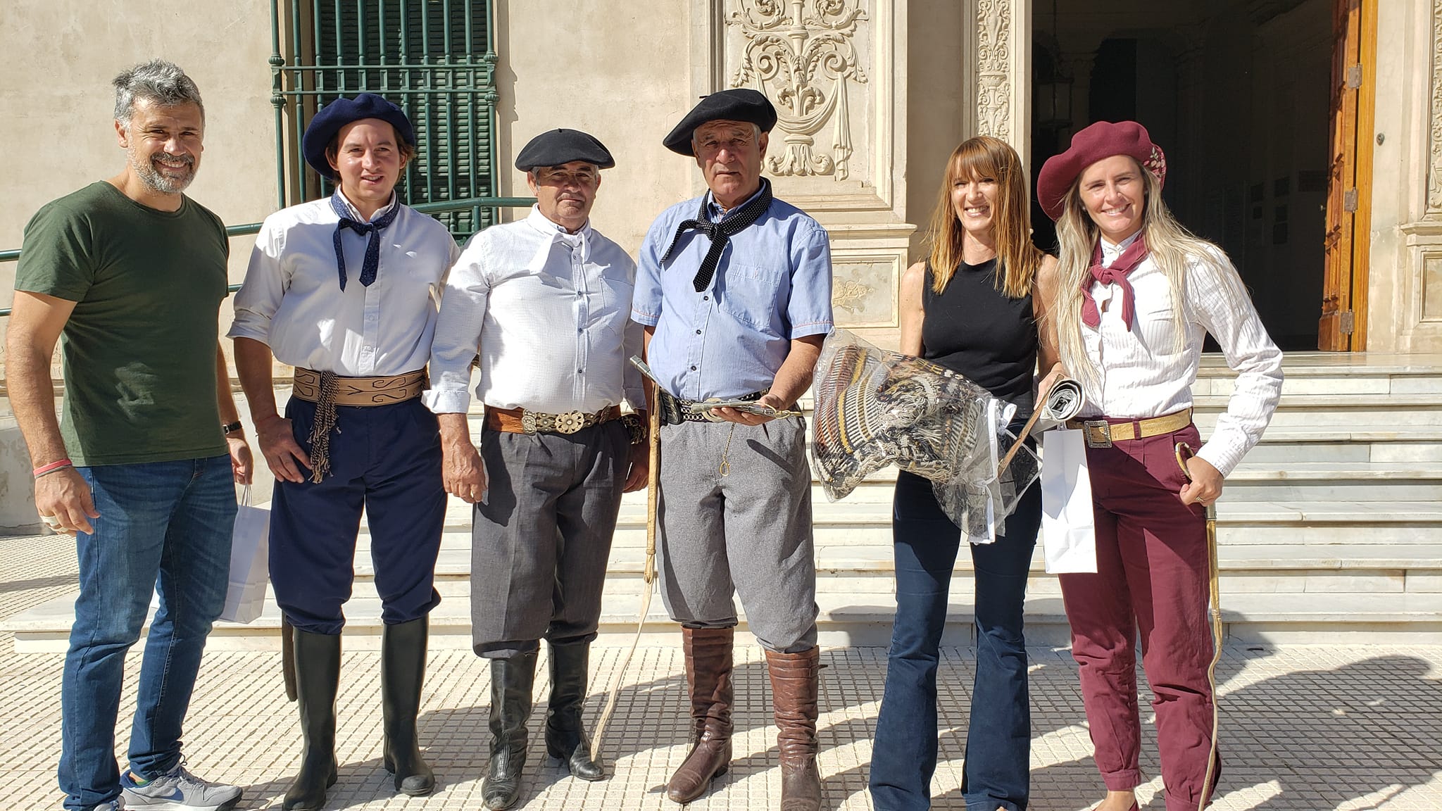 El domingo por la mañana llegó al Palacio Municipal Jorge Mansilla y un grupo de amigos, a caballo desde General Pico, para hacer entrega a la Secretaria de Gobierno María Carmona y el Director de Cultura Alfredo Urrutia, de pertenecias y recuerdos de su papá Don Cándido Mansilla, para el Museo Histórico de Rivadavia.
