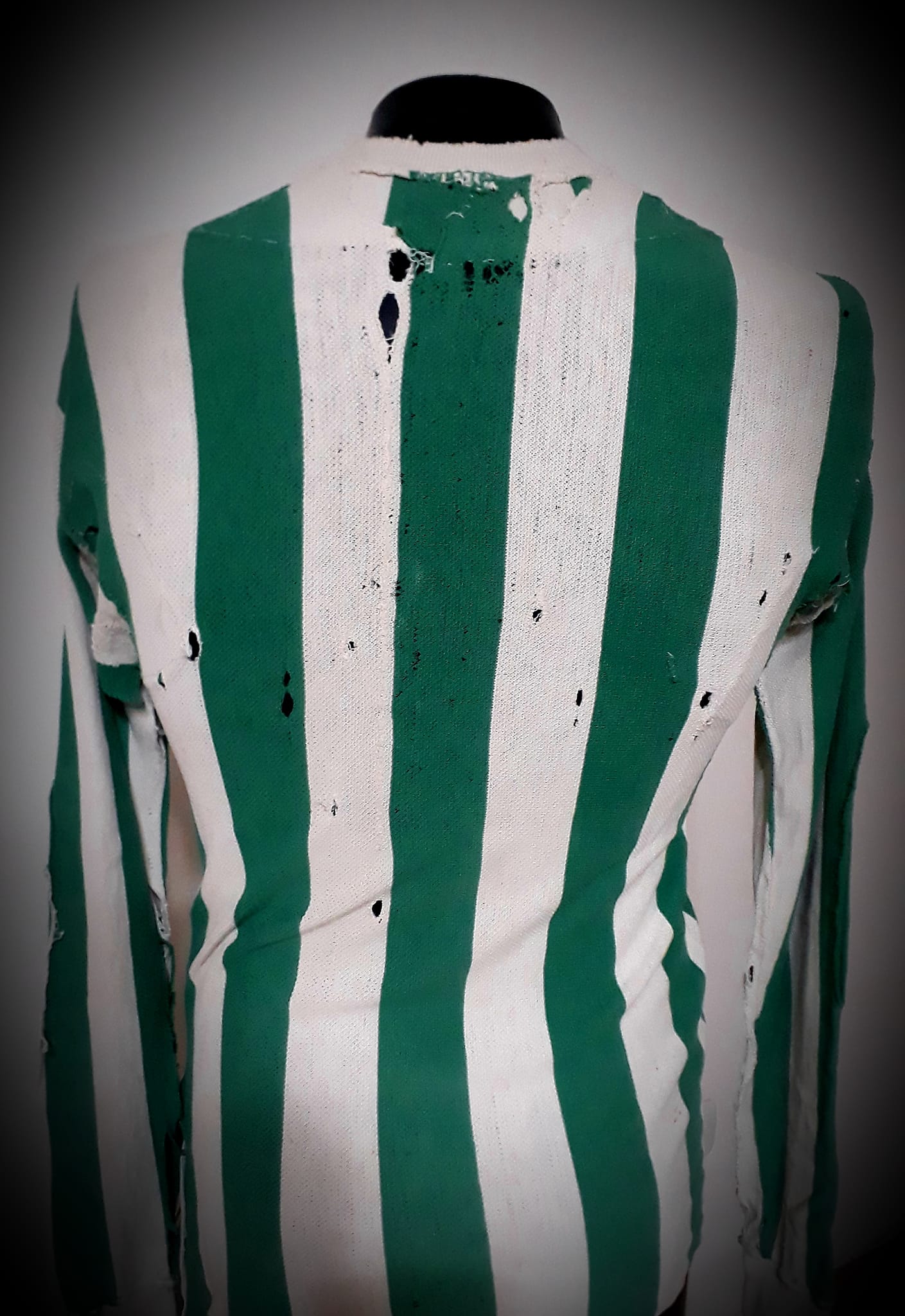 Me contó que guardaba esa camiseta con gran orgullo y era una forma de recordarlo a él. También me dijo que, si bien no estaba en las mejores condiciones por el paso de los años, me podía llegar a servir. La tenía a mano ya que un nieto suyo la había llevado al colegio para mostrarla en un evento especial. Conversamos un ratito más, me agradeció por el trabajo que estaba realizando y le aseguré que la iba a cuidar como oro y que, obviamente, luego se la regresaba tal cual ella me dio.