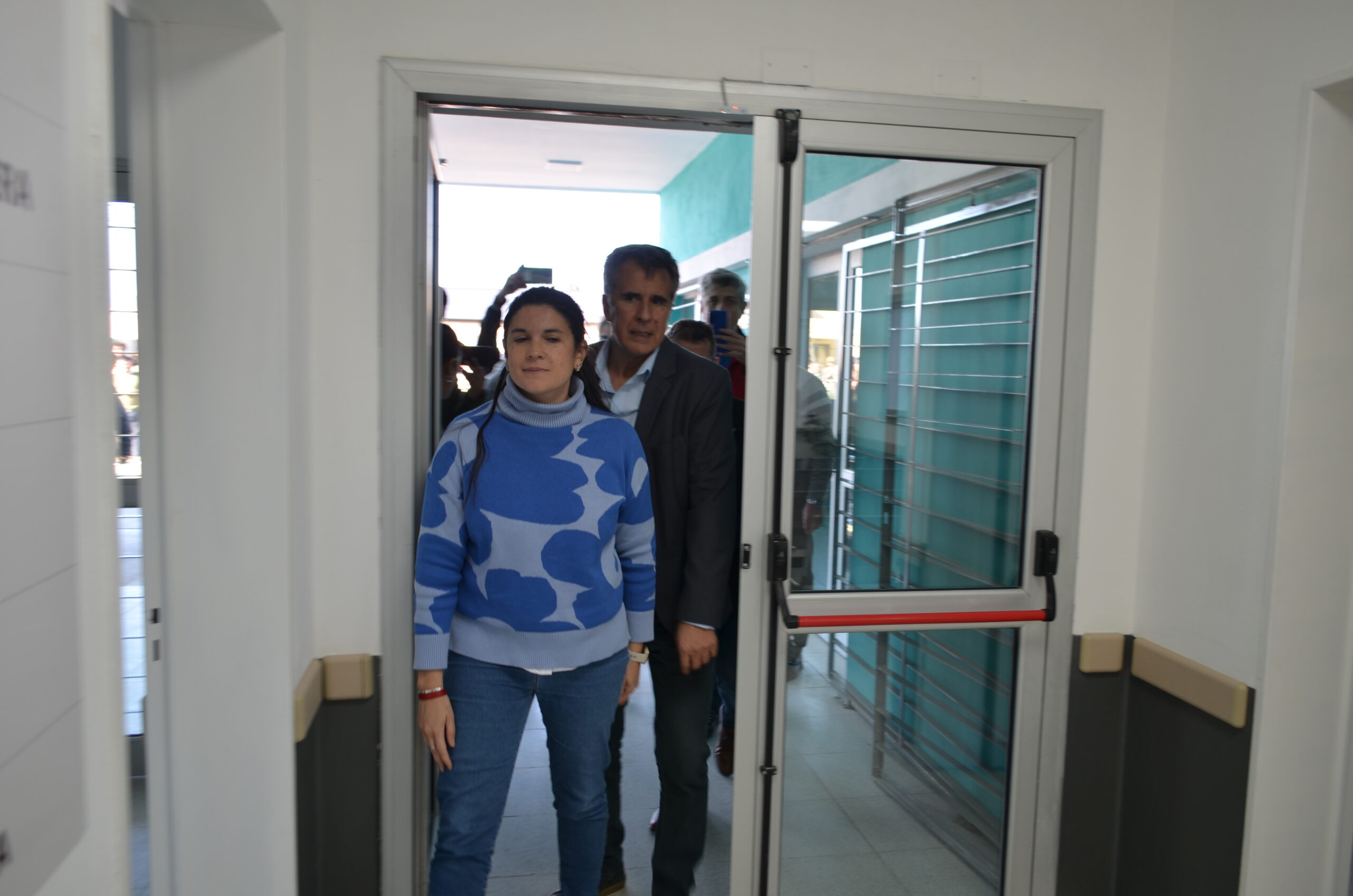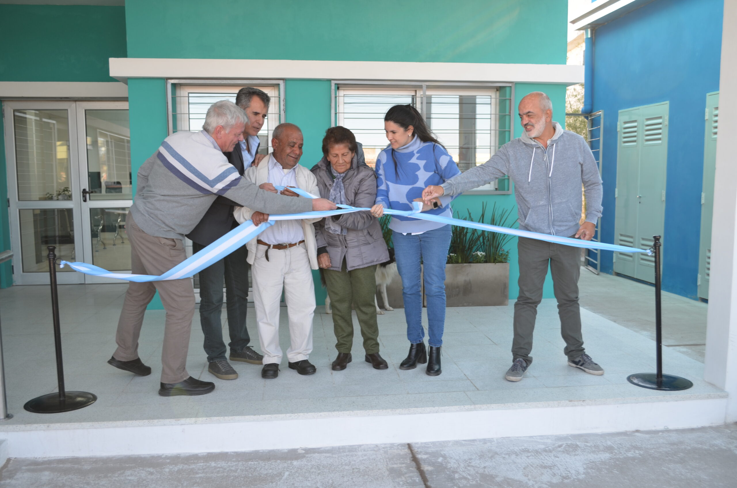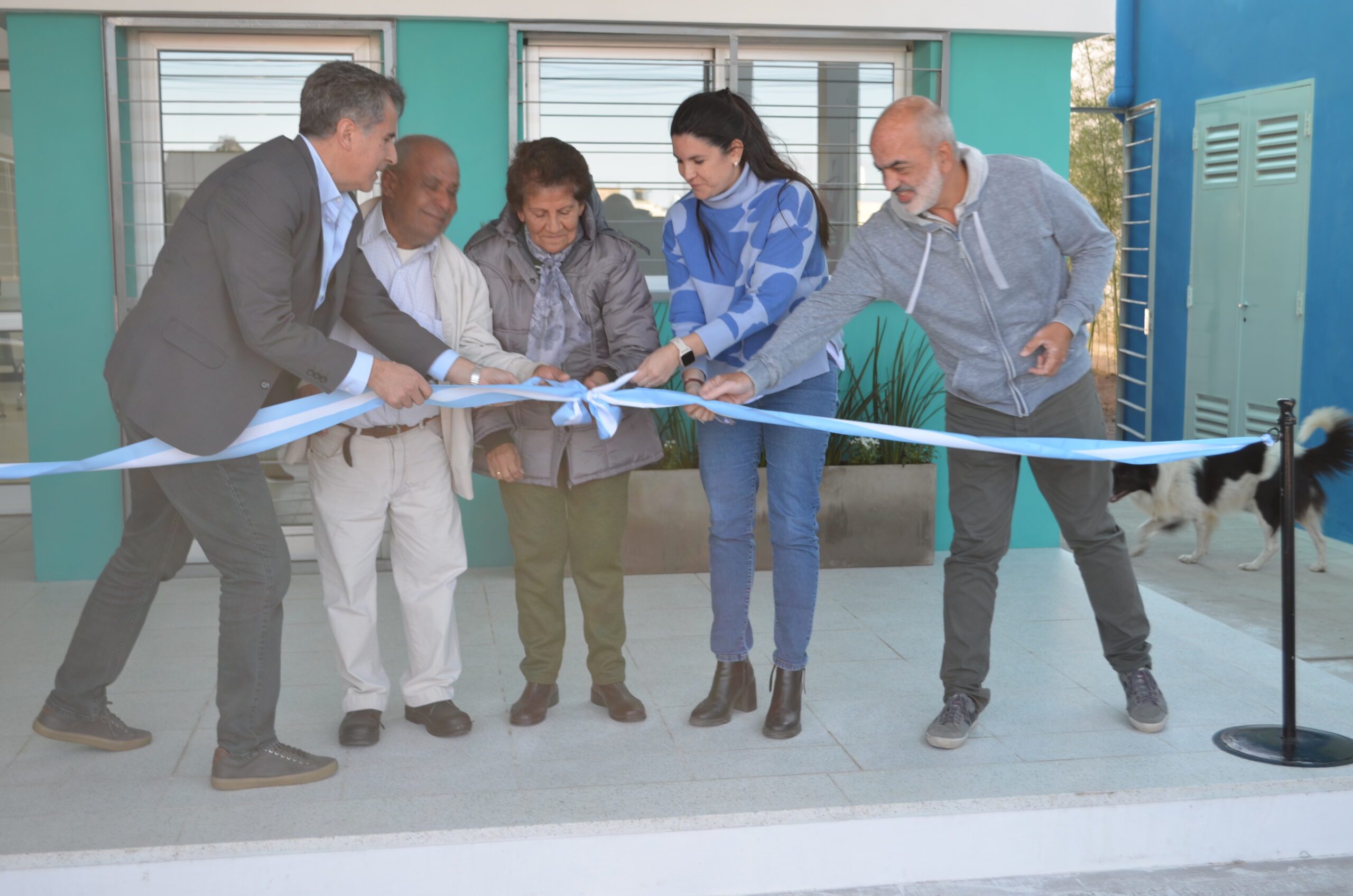 El corte de cintas llegó con los funcionarios antes mencionados acompañados por el Secretario de Obras Públicas, arq. Juan Dufourc y los vecinos deel barrio Rosita Vargas y Enrique Sánchez