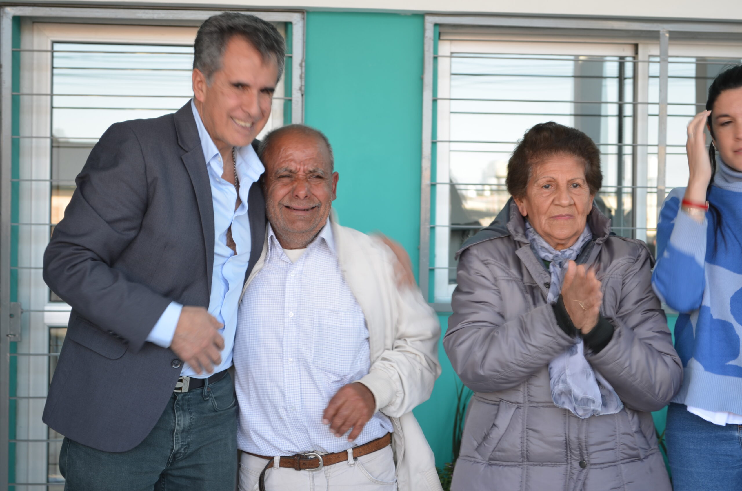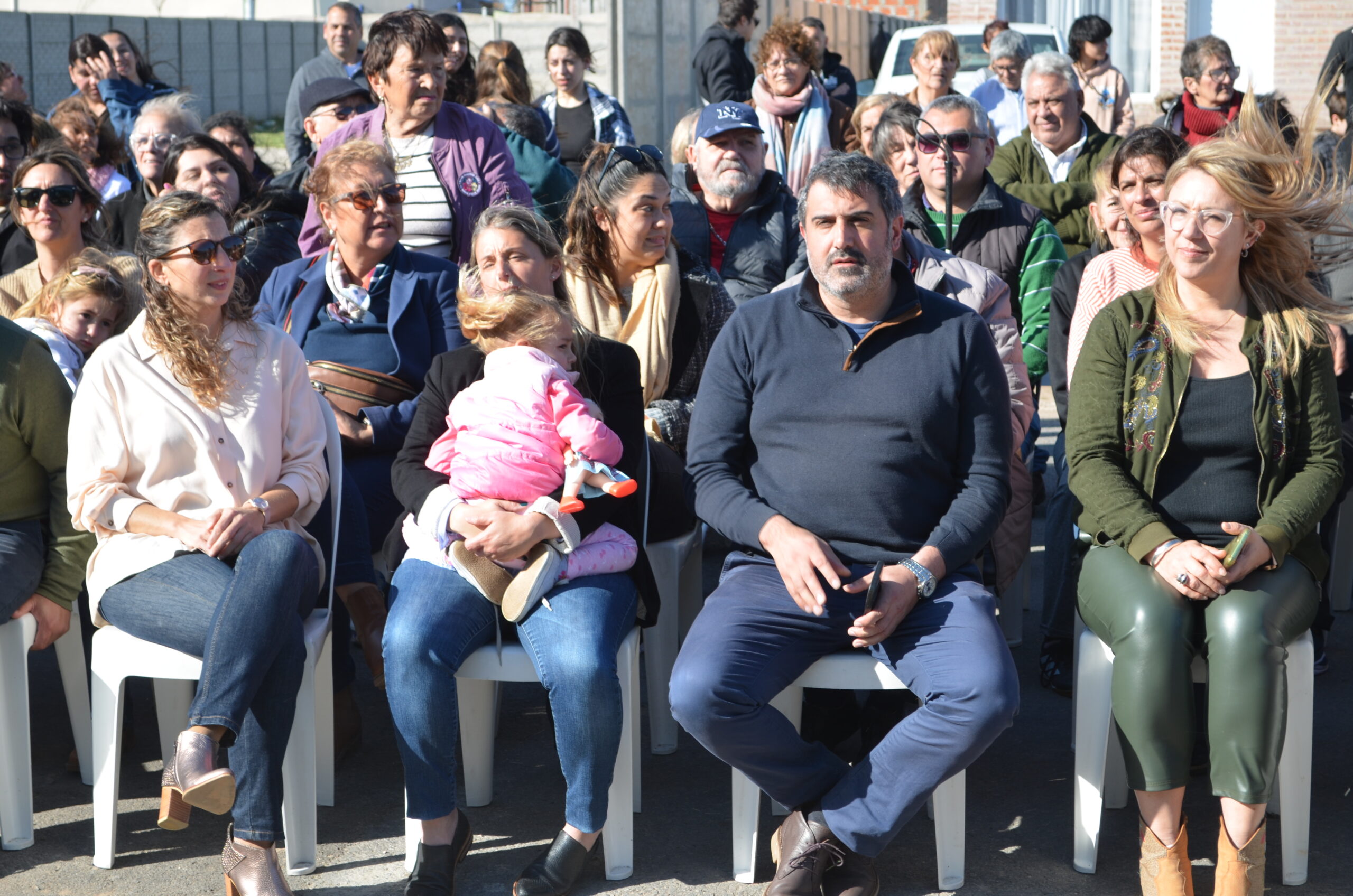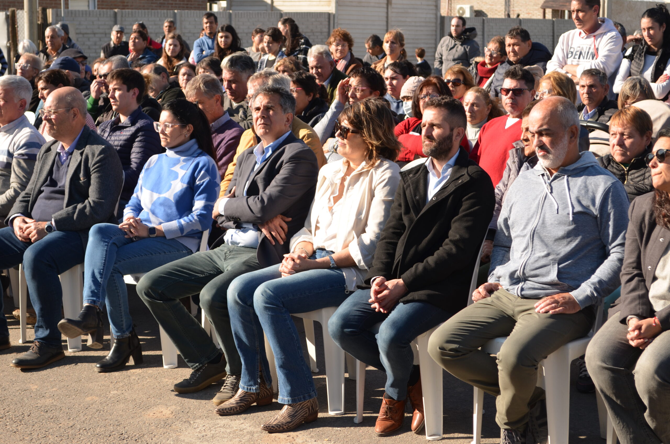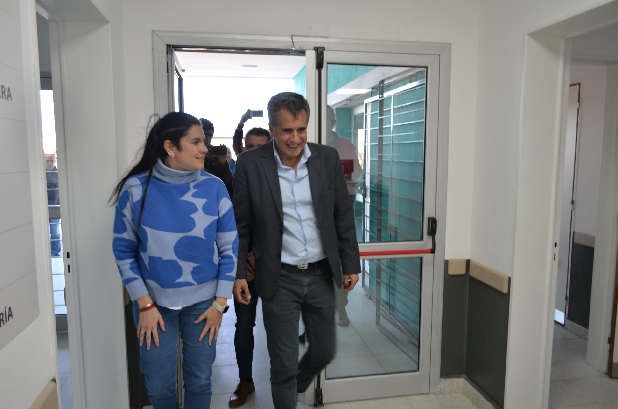 El corte de cintas llegó con los funcionarios antes mencionados acompañados por el Secretario de Obras Públicas, arq. Juan Dufourc y los vecinos deel barrio Rosita Vargas y Enrique Sánchez