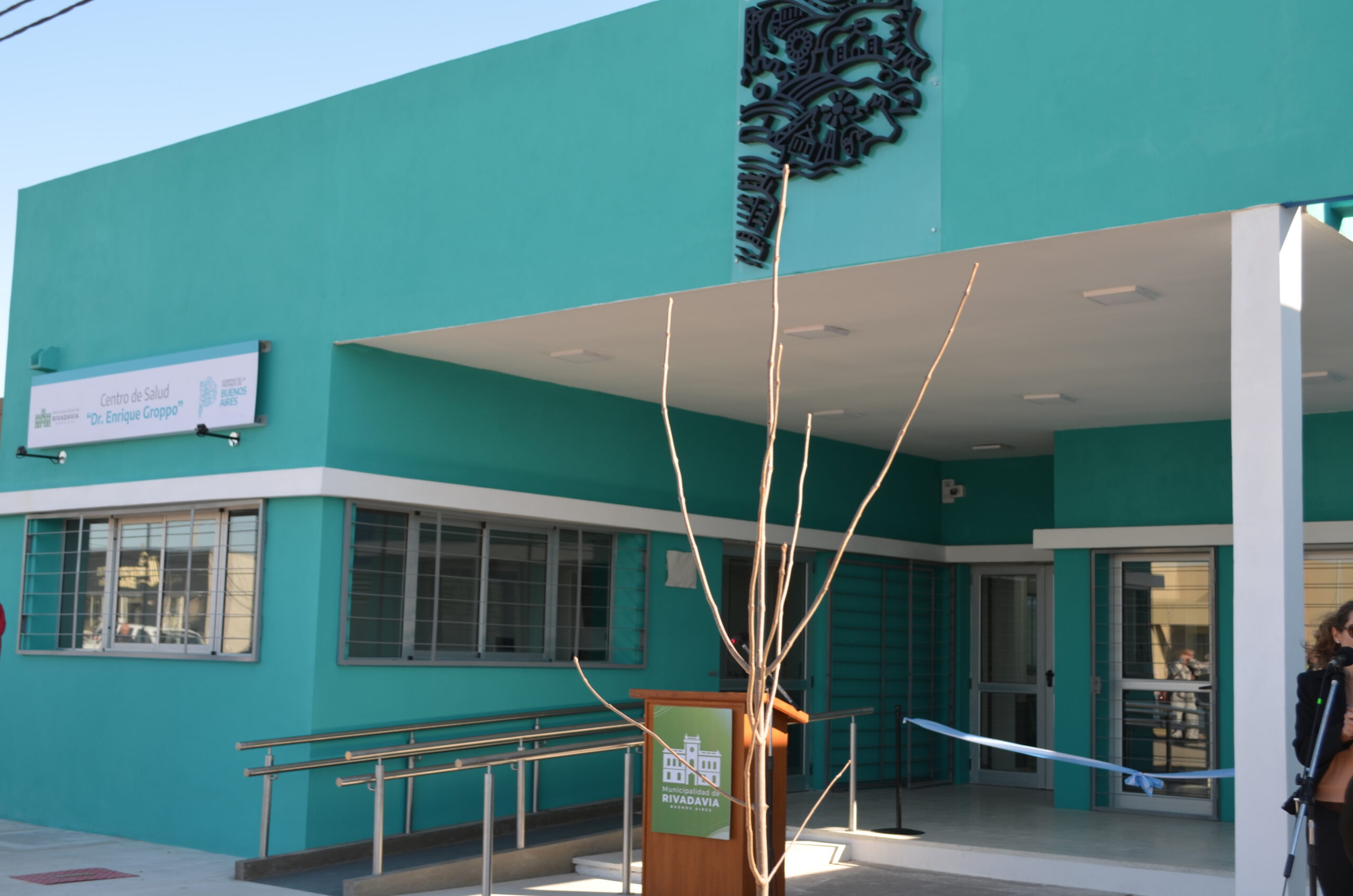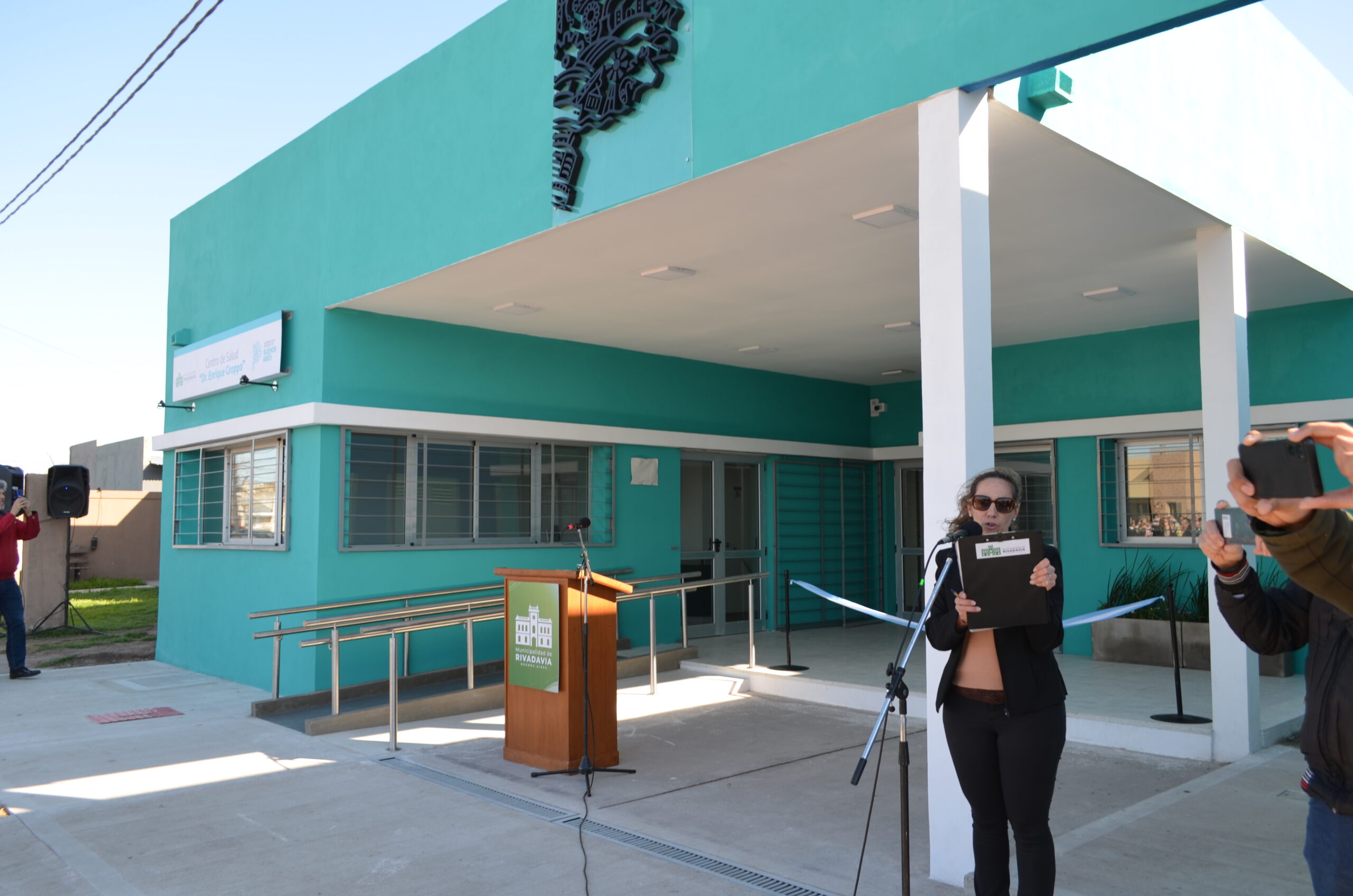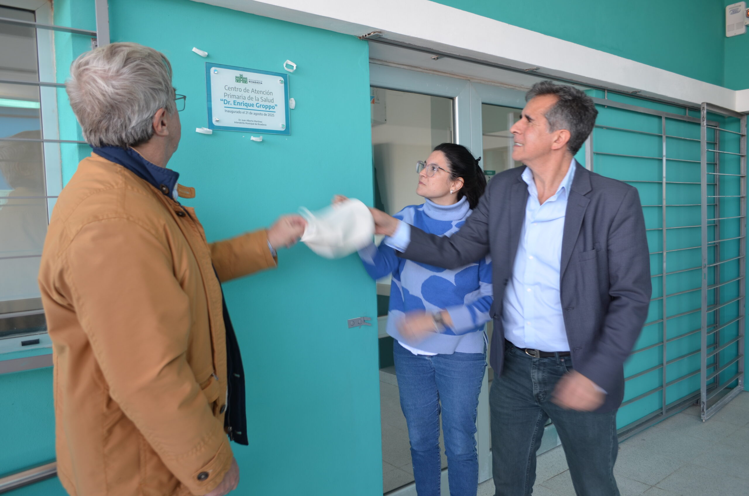 Para el descubrimiento de la placa que dejó asentado el nombre del nuevo centro de Salud y la fecha de inauguración fue invitado el Dr. Alejandro Groppo (sobrino nieto del Dr. Enrique Groppo), el Intendente Municipal Juan Alberto Martínez y la Viceministra de Salud de la Provincia de Buenos Aires, Dra. Alexia Navarro