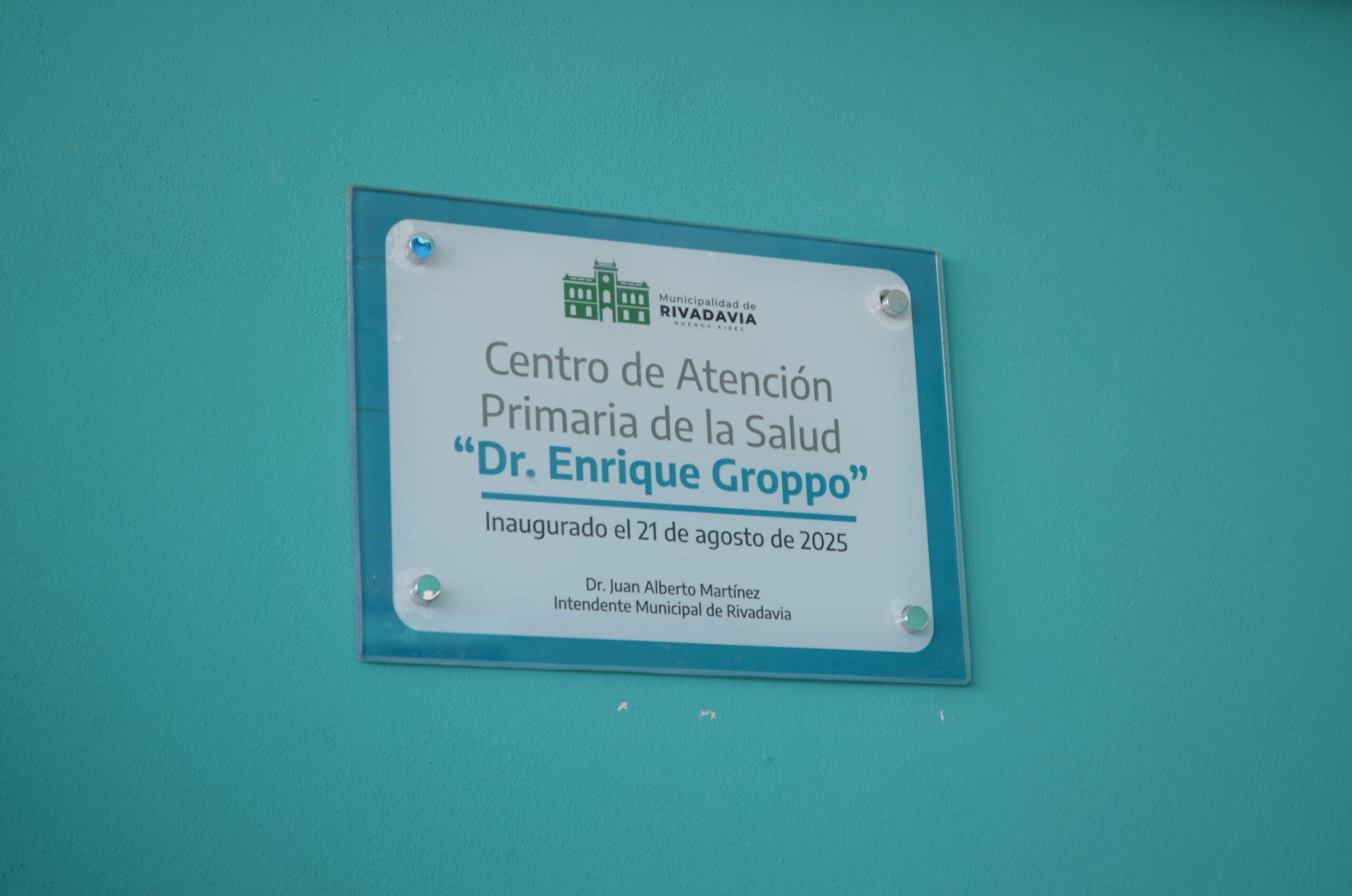 El nuevo edificio mantiene el nombre del Dr. Enrique Groppo, impuesto al anterior Dispensario, por Ord. N° 1.150 del año 1987. Posteriormente, en el año 1993, el Dr. Enrique Groppo fue declarado “Ciudadano Ilustre de Rivadavia” reconociendo el ejercicio de su profesión a lo largo de 50 años y destacando su esfuerzo y espíritu de servicio a la comunidad.