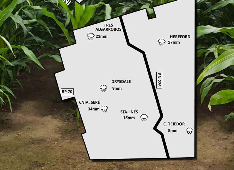 A través de la empresa A y M Servicios Agropecuarios te contamos los datos surgidos después de las lluvia del domingo 7 de enero. San Mauricio con 45 mm, América con 36 mm y González Moreno con 20 mm fueron los lugares donde más lluvia cayó.