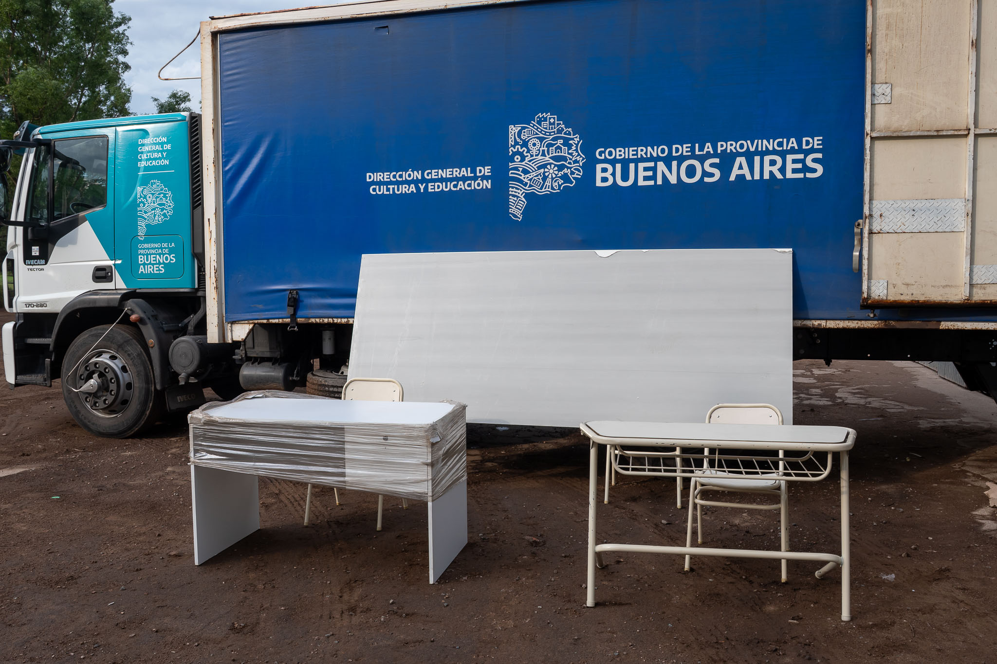 El equipamiento incluye bancos, sillas, escritorios y pizarras, y forma parte de la etapa final de esta importante obra que se encuentra próxima a inaugurarse.