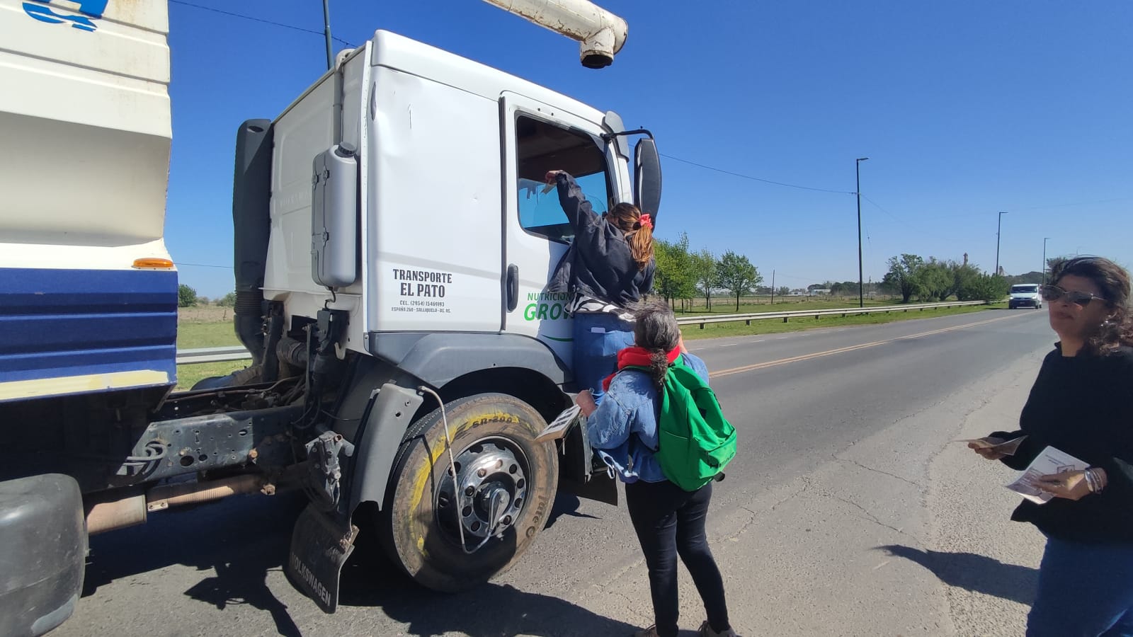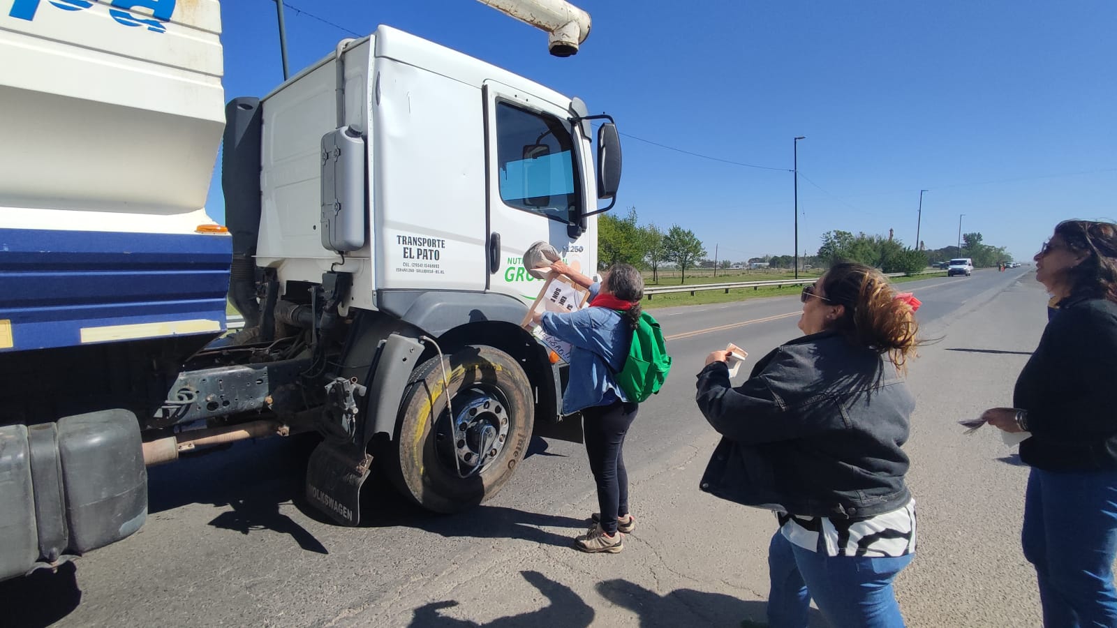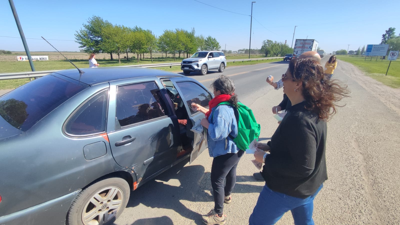 Luego de los discursos los docentes armaron grupos de trabajo y se dirijieron a la ruta propiamente dicha donde entregaron en mano a los transportistas y automovilistas que por allí pasaban un panfleto que expresaba la preocupación de abandono y el pedido de arreglo de la ruta