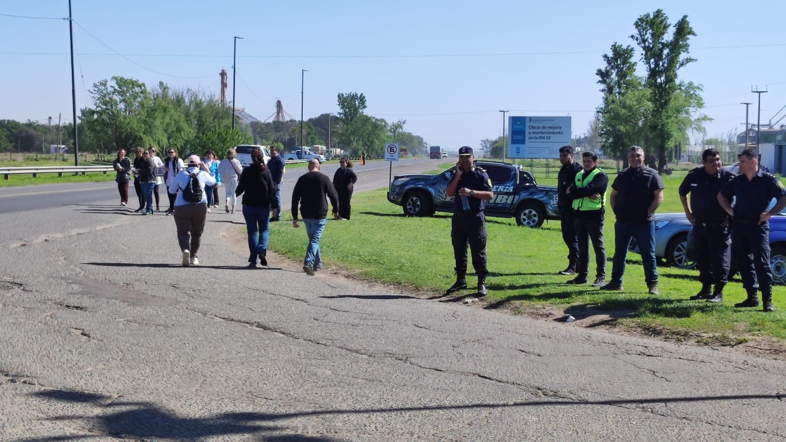Un gran número de vecinos, en su mayoría del sector docente se dieron cita en el arco de entrada a la ciudad para manifestar su preocupación por el estado de la ruta nacional la cual esta prfácticamente intransitable a raíz de los pozos que cada vez son más.