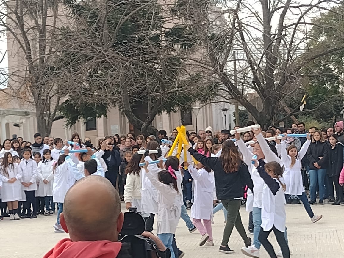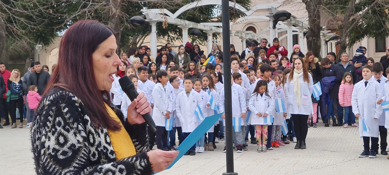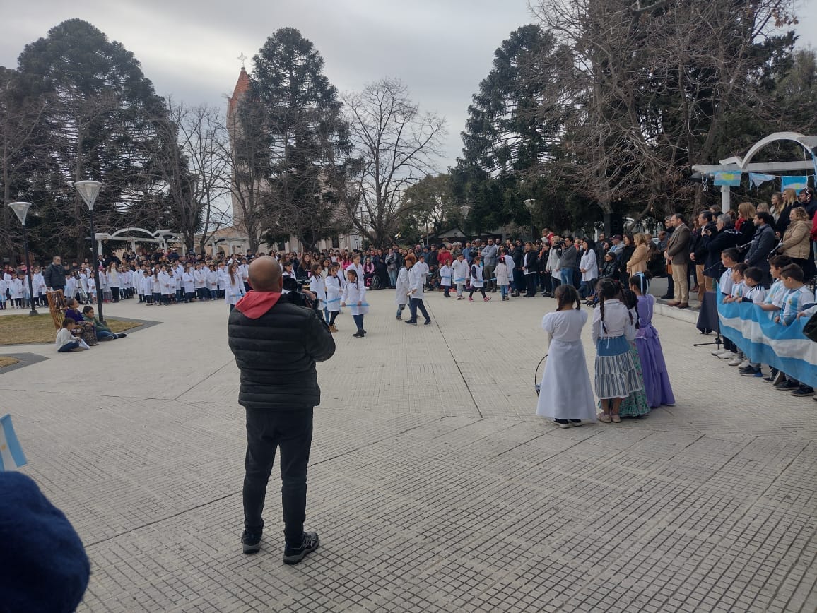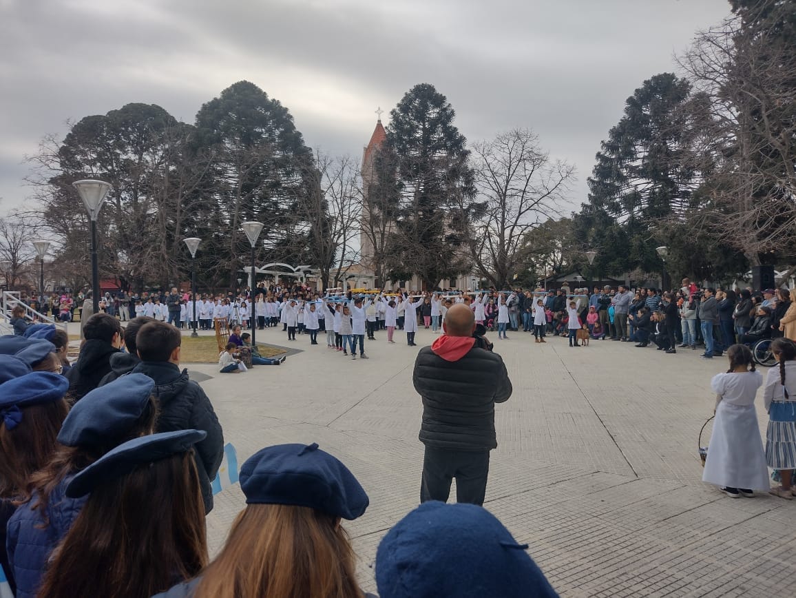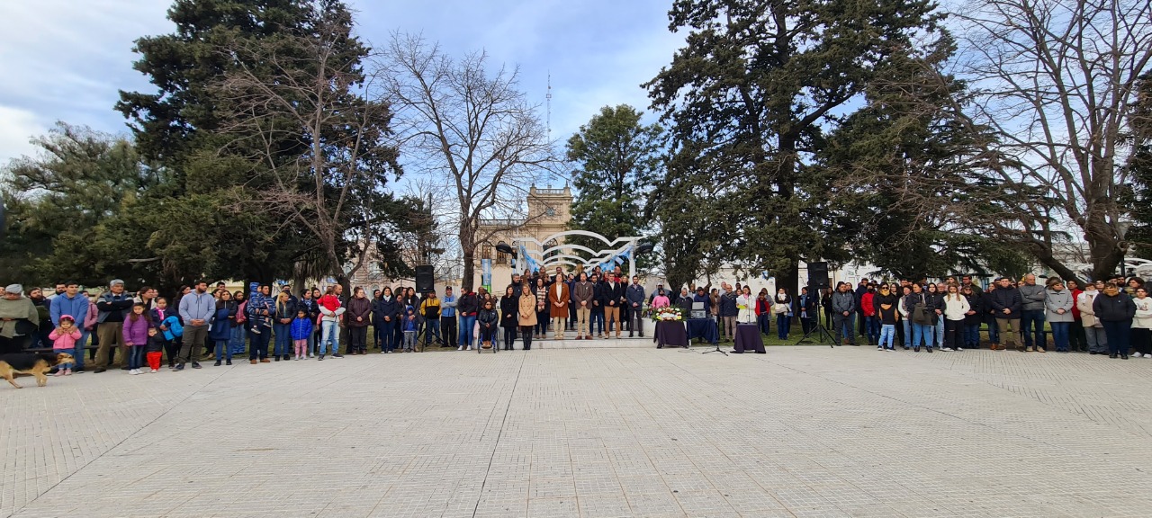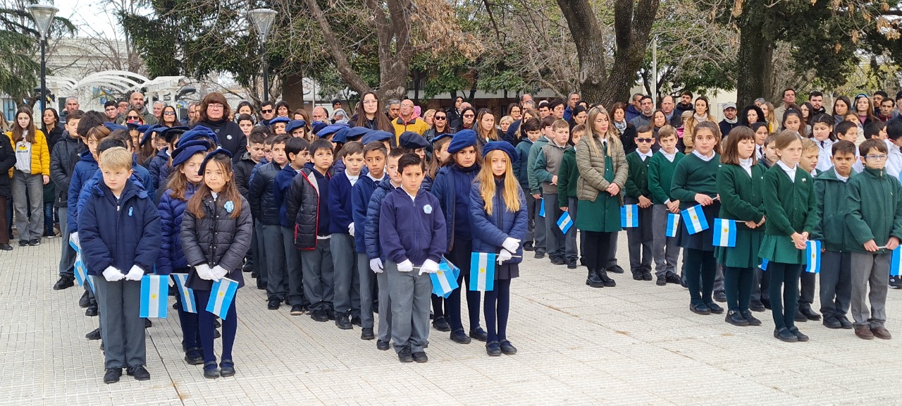 Como en cada acto oficial el Intendente Municipal Dr. Javier Ulises Reynoso, acompañado por autoridades de Gobierno, Educativas e instituciones de nuestro medio llevaron el pabellón nacional desde el Palacio hacía el mastil central de la plaza donde fue izado.