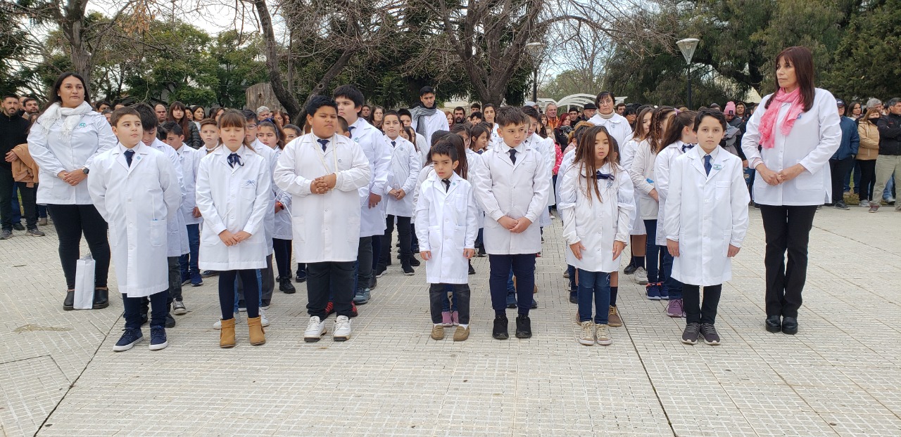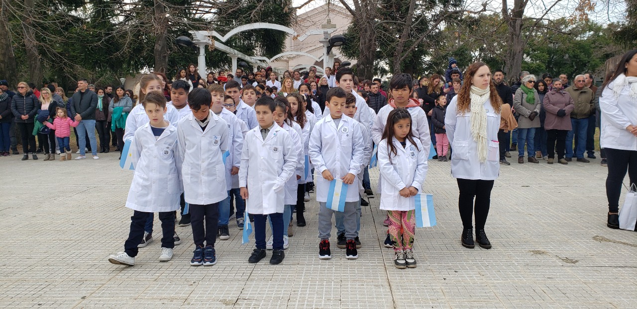 Del acto participaron con sus docentes, los alumnos de Cuarto Año de las instituciones de Educación Primaria públicas y privadas de la ciudad de América, quienes manifestaron, su Promesa de Lealtad a la Bandera.