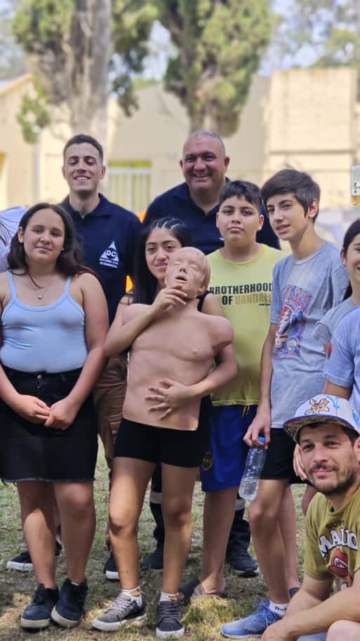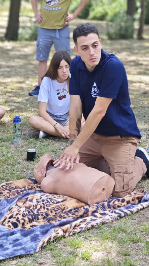 El grupo de apoyo de Defensa Civil tuvo su participación con un taller de RCP, maniobra de Heimlich y uso de matafuegos.