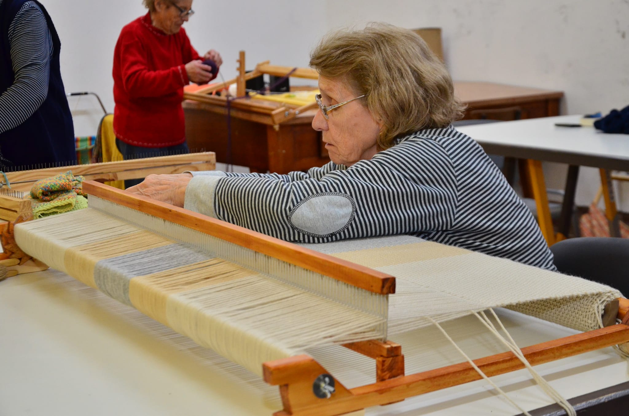 Las alumnas del Taller Municipal de Telar, a cargo de la profesora Viviana Civalero, muestran como trabajan día a día y sus producciones.