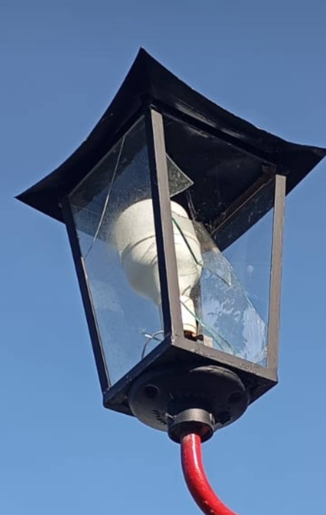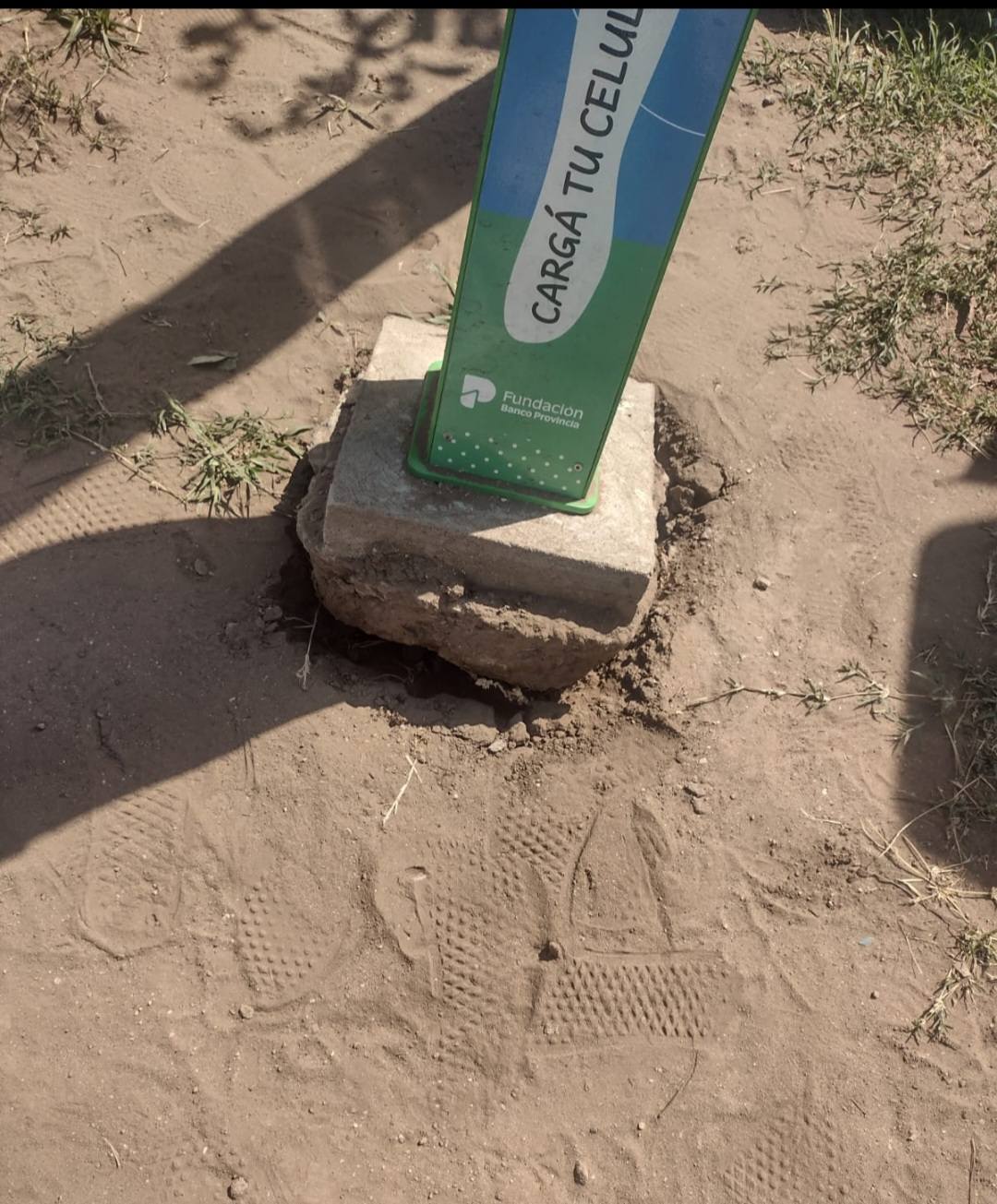 Kress mostró en fotos cómo quedaron una farola y un tótem de carga ubicados en el parque después de que marginales rompieran el lugar.