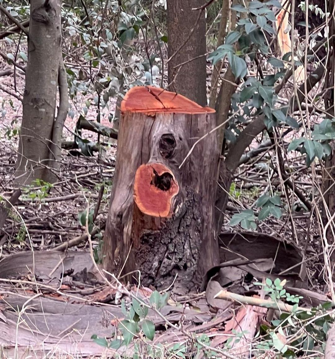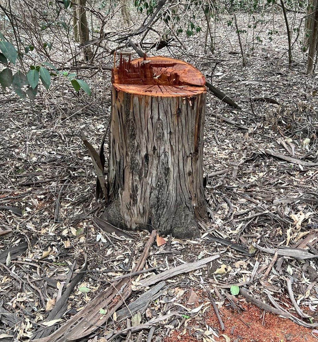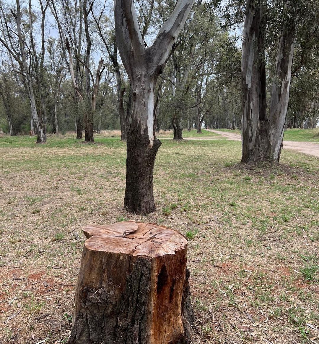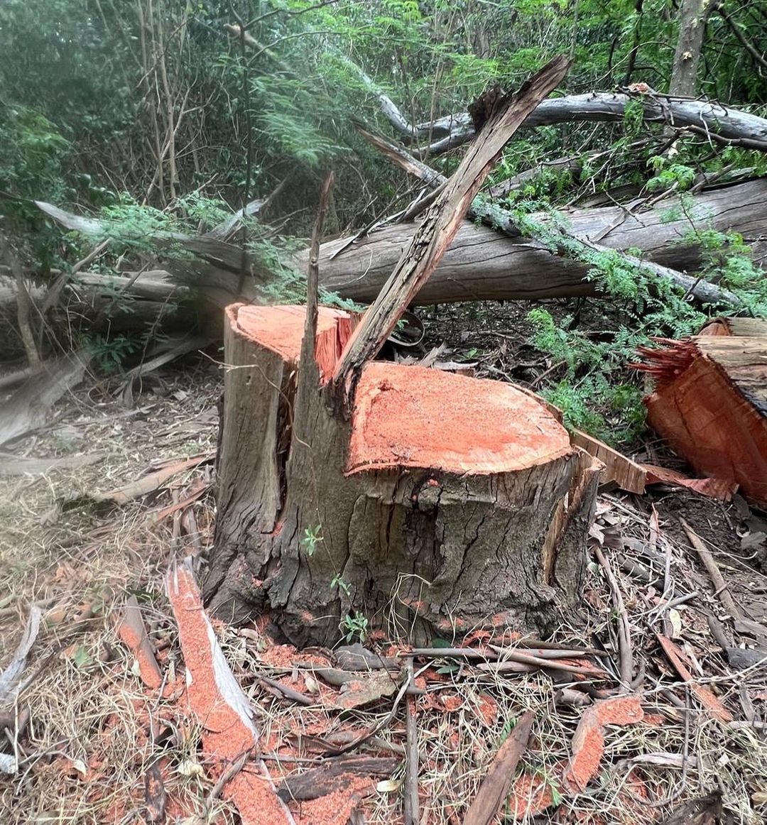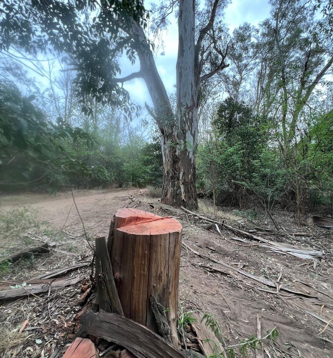 Pero esta vez mi asombro fue mayúsculo cuando me encontré en el camino que va de la rotonda interna del Vivero al camino externo que sale a la Ruta 33, con el corte de 12 eucaliptos y 1 pino con evidentes síntomas de vida. No solo matan plantas añejas, sino también destruyen el entorno a las mismas y rompen un paisaje único que los vecinos disfrutamos con orgullo.