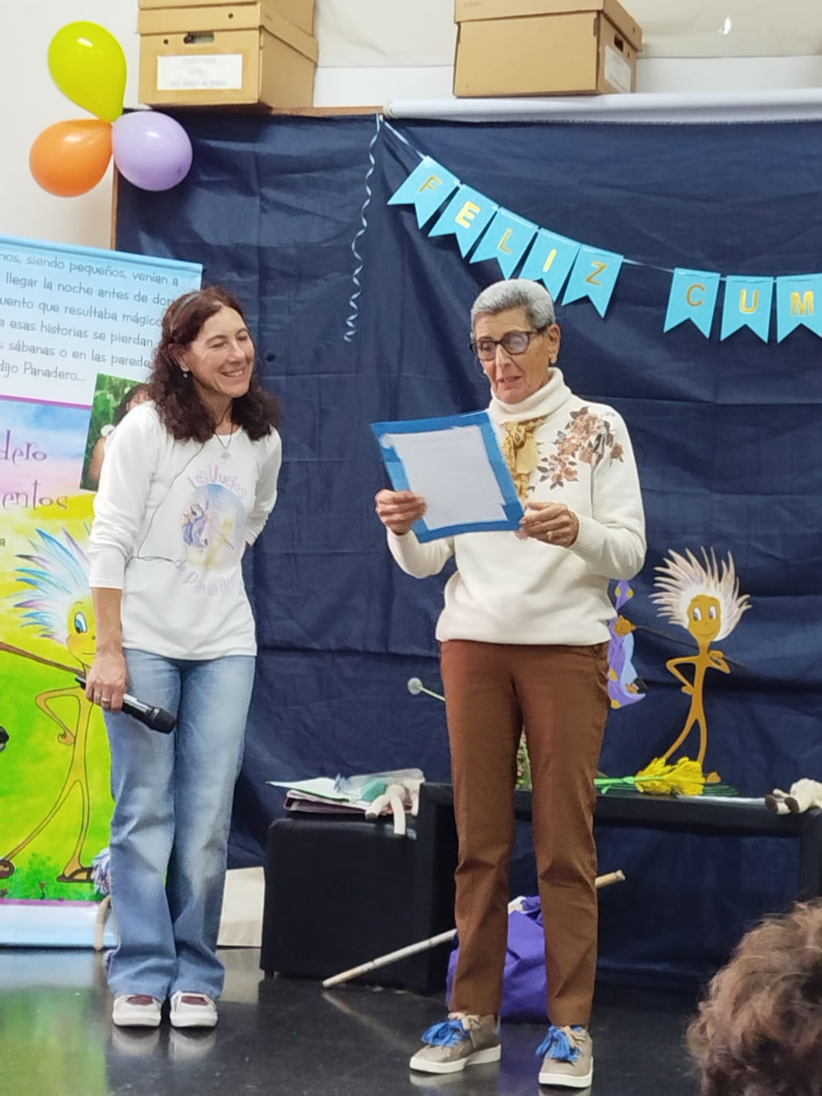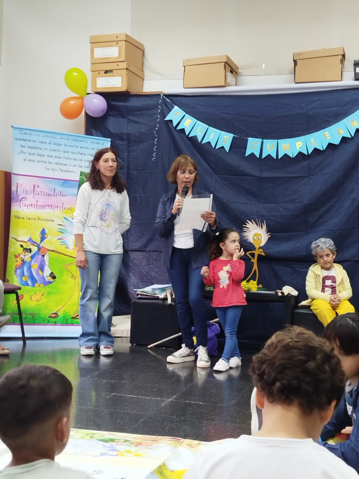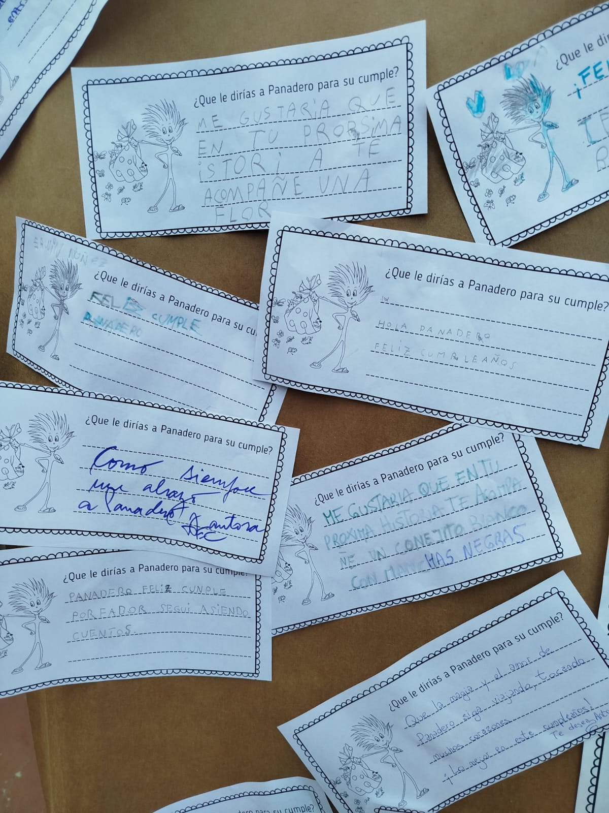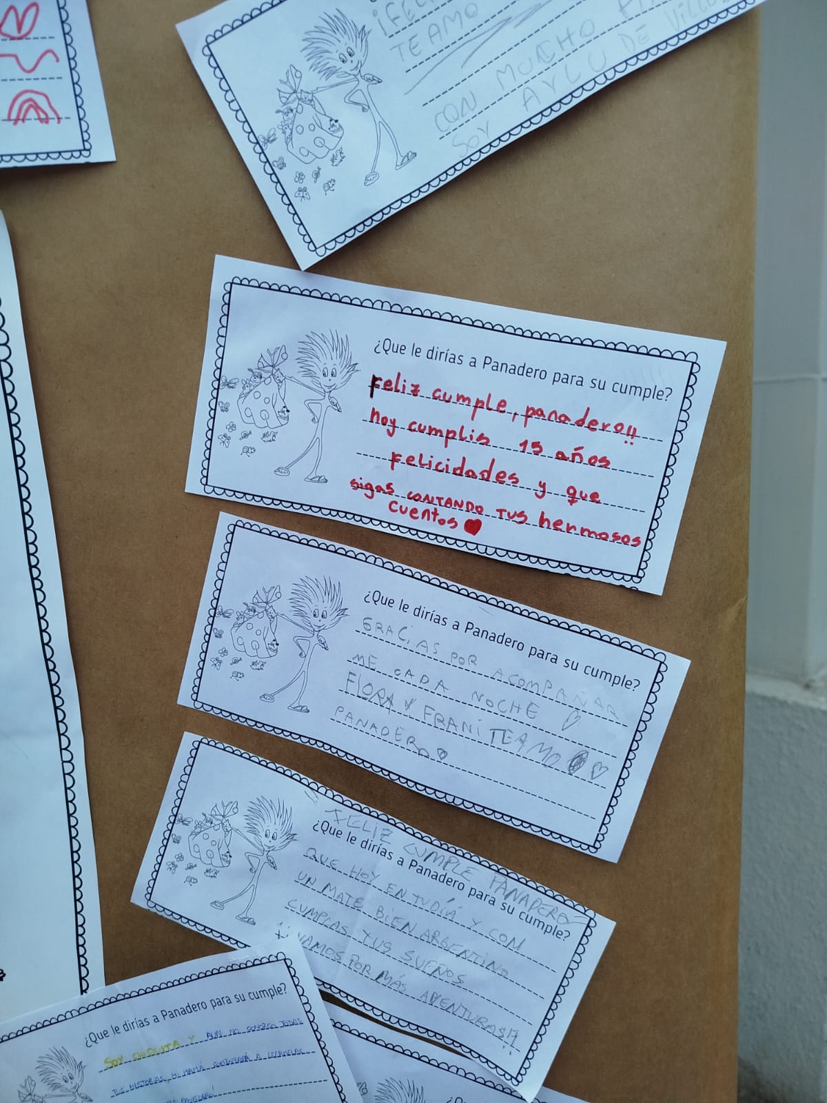 “Luego, compartimos una canción y versiones de cuentos que otros alumnos en distintas ocasiones realizaron. Finalmente, el público presente tanto grandes como chicos dejaron plasmados por escrito mensajes de saludos hacia Panadero Cuentacuentos y cerramos cantando y festejando el cumple con una linda torta y merienda” agregaron.