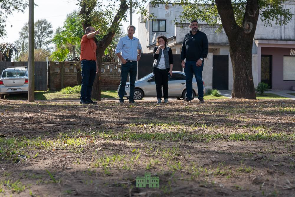 El intendente Juanci Martínez, junto al delegado Héctor Raúl Echeverría, el secretario de Gobierno Sebastián Hernández y la arquitecta Micaela Hernández, visitaron el terreno donde se proyecta la construcción de un nuevo Parque Infantil en conjunto con la Fundación Banco Provincia.