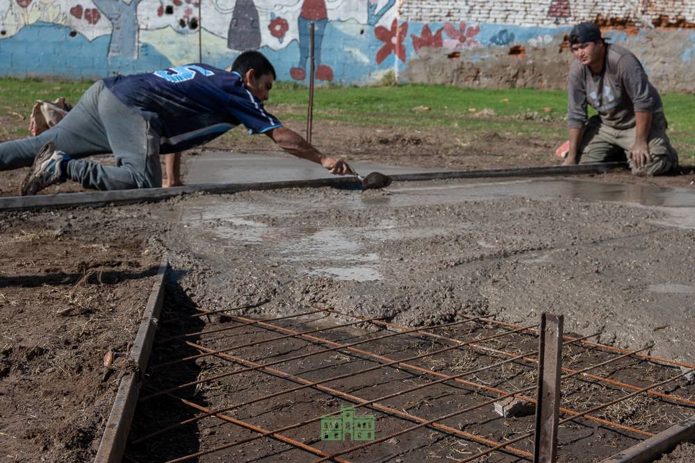 La obra se lleva adelante en el predio ubicado en la intersección de las calles Martín Félix Pereyra y 25 de Mayo, donde ya comenzaron los trabajos de estructuras y bases para la instalación de los juegos, cartelería y arbolado.