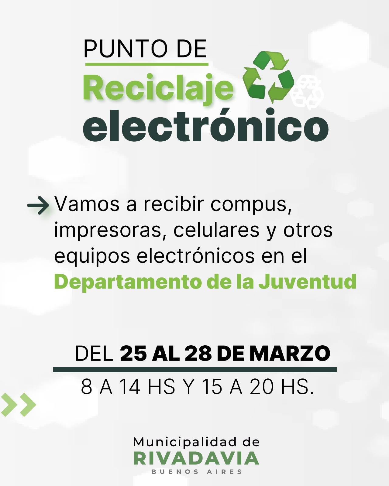 ♻️🖥️ Del 25 al 28 de marzo, acercá tus residuos electrónicos en desuso al Departamento de la Juventud y contribuí a un ambiente más sostenible.