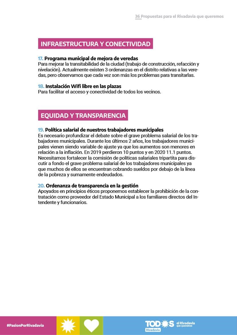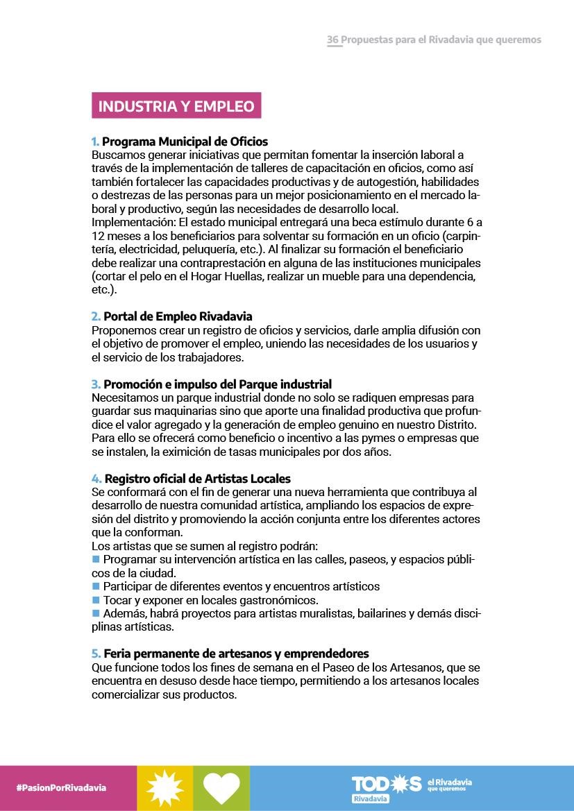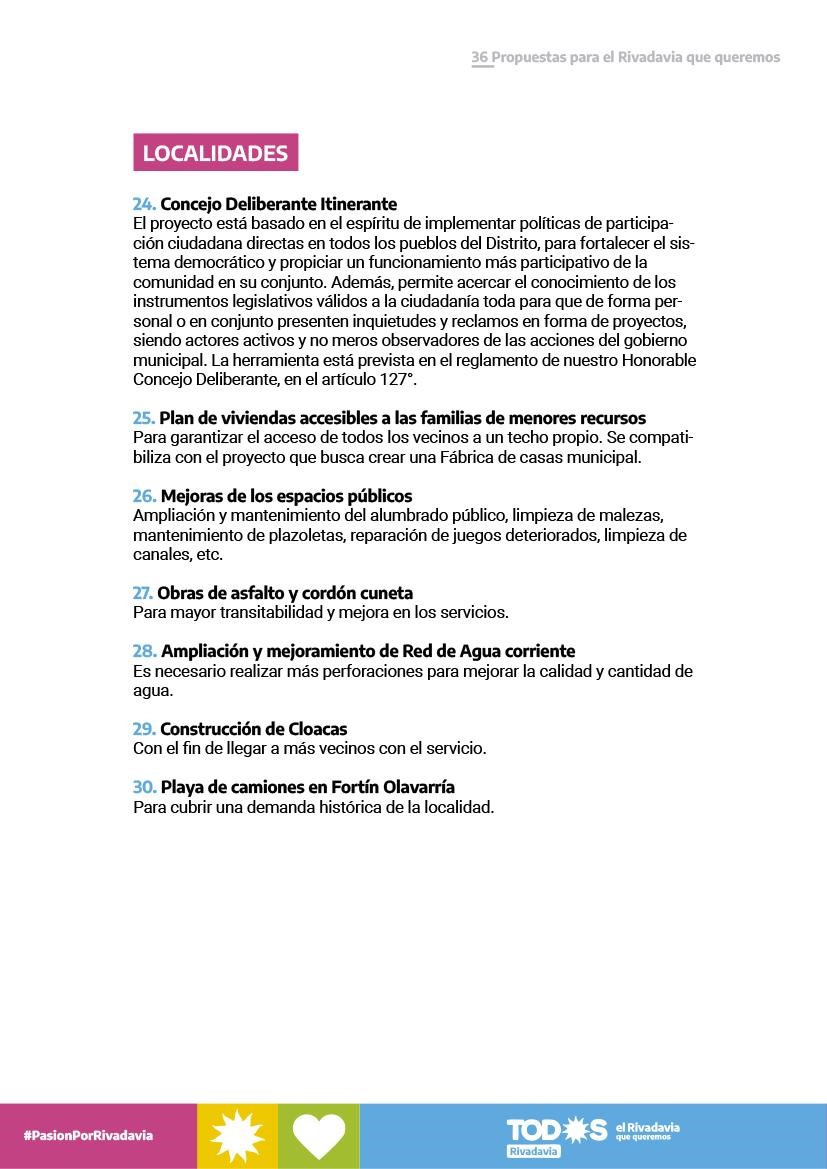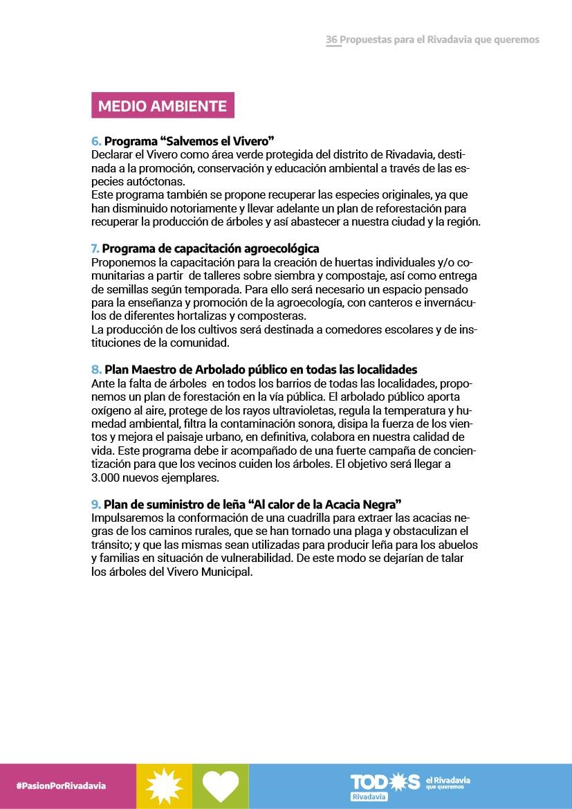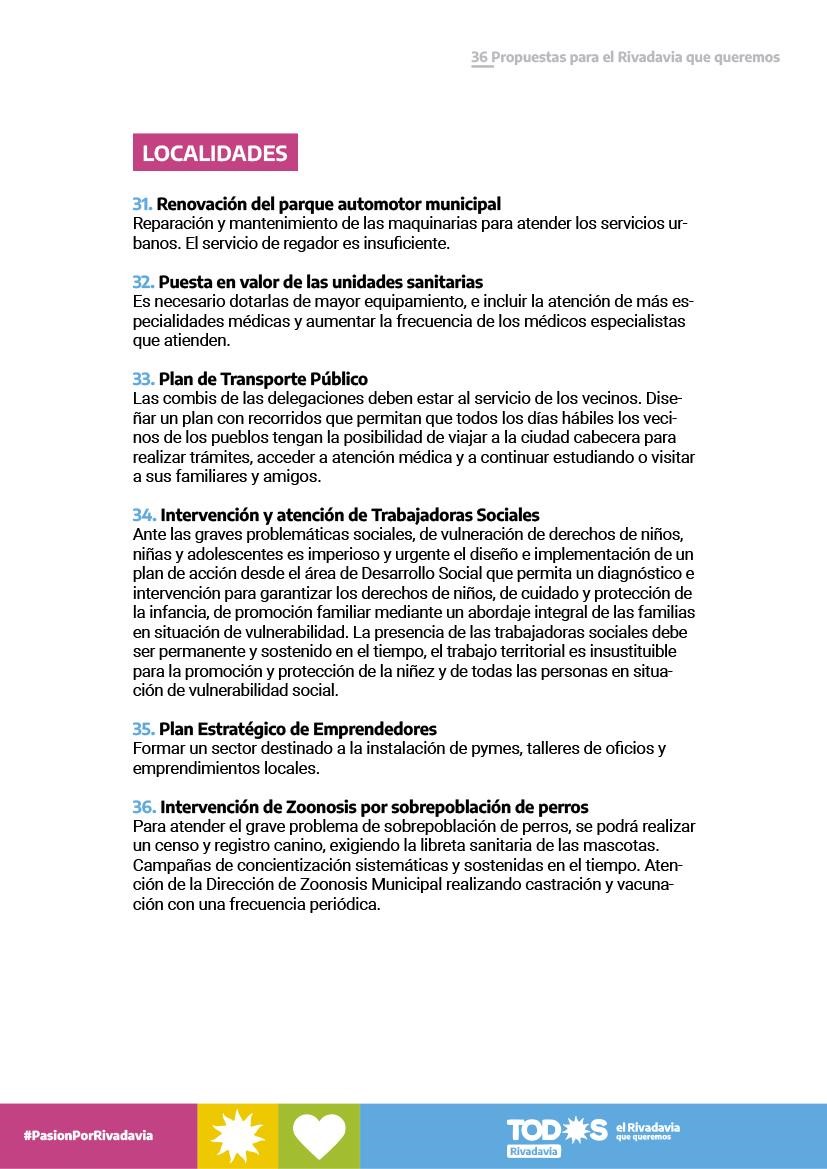 LAS 36 PROPUESTAS PARA UN RIVADAVIA MEJOR