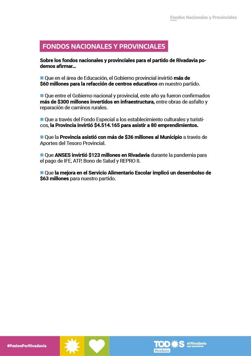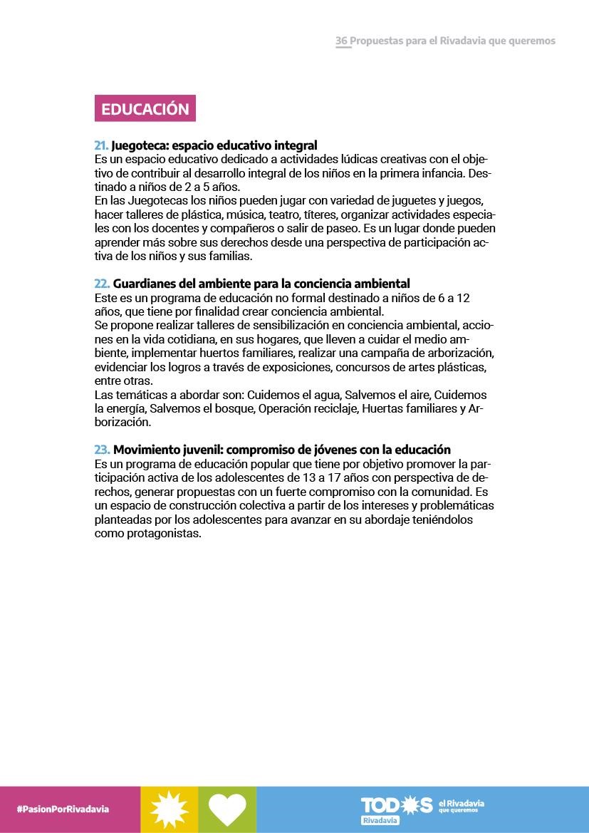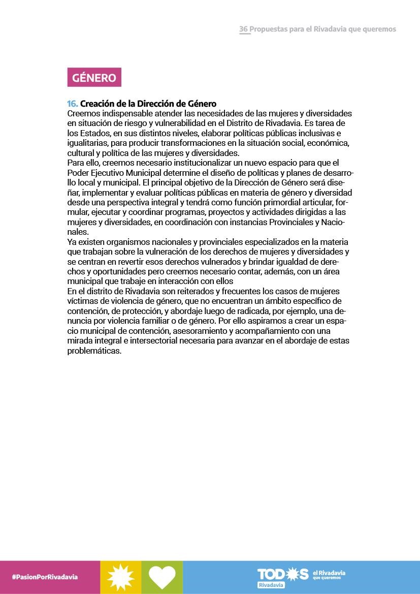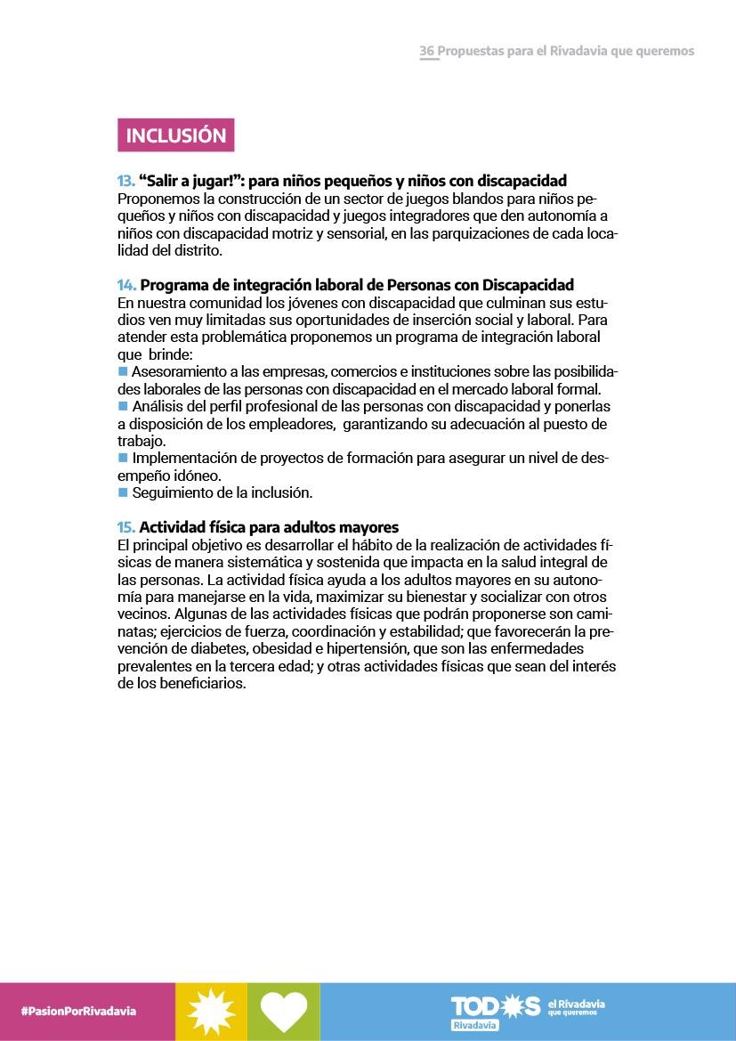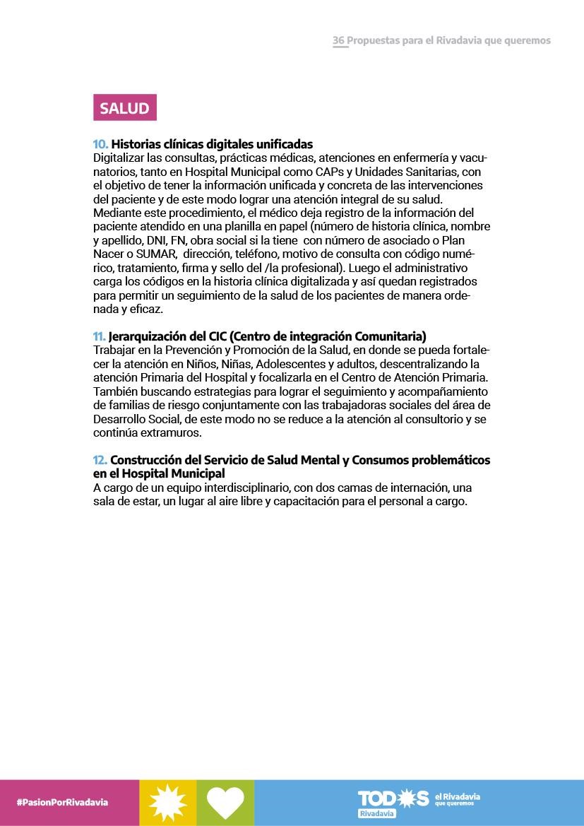 LAS 36 PROPUESTAS PARA UN RIVADAVIA MEJOR