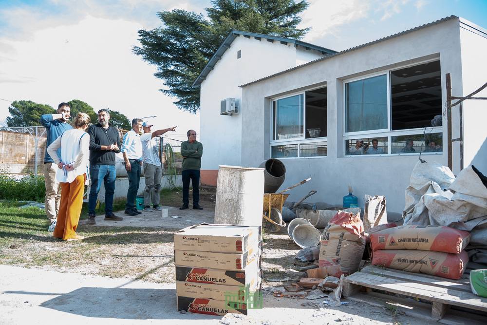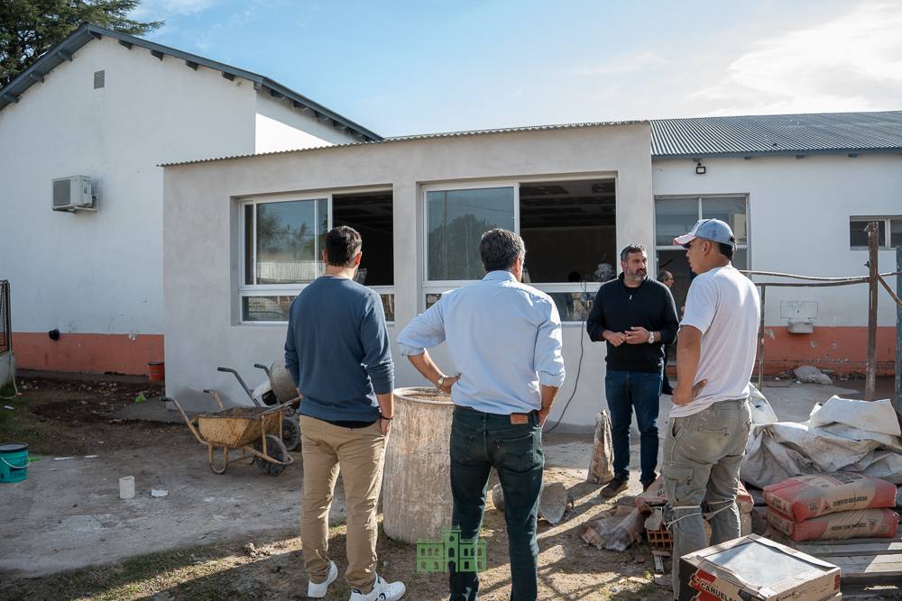 El intendente Juanci Martínez, acompañado por el delegado Héctor Raúl Echeverría, el secretario de Gobierno Sebastián Hernández, el consejero escolar Facundo Galarza y la arquitecta Micaela Hernández, recorrieron el avance de la obra de la nueva aula en la Escuela Primaria Nº 5, junto a su secretaria Paola Dematteis.