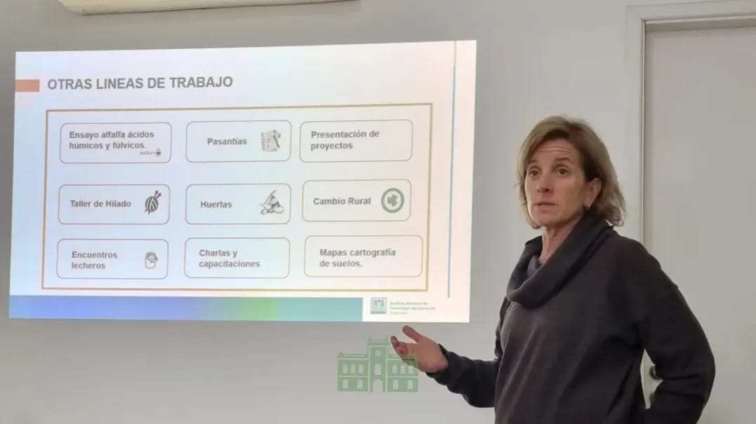 La Directora de Producción y Ambiente, Natalia Mariel Montoya, junto a Aylén Gatica, representante de la Organización de Información Técnica (OIT) América, se reunieron en la ciudad de Lincoln con los representantes del Consejo Local Asesor de INTA.