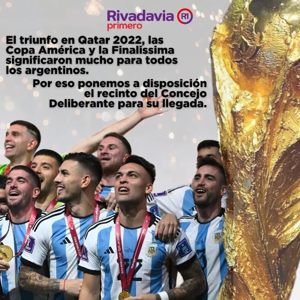 Los concejales de Rivadavia Primero agregaron que “Los vecinos van a poder tener frente a ellos las copas ganadas por la Scaloneta y que tantos momentos de felicidad nos trajeron. Ponemos así a disposición el recinto del Concejo Deliberante para que todos puedan venir”
