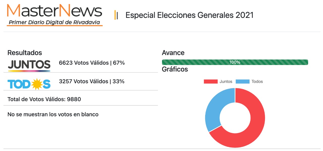 El resultado obtenido por Rivadavia Primero quedó al tope de los triunfos de Juntos en la Cuarta Sección electoral convirtiéndose de esta forma en el municipio donde se obtuvo el mejor porcentaje de votos por un ganador