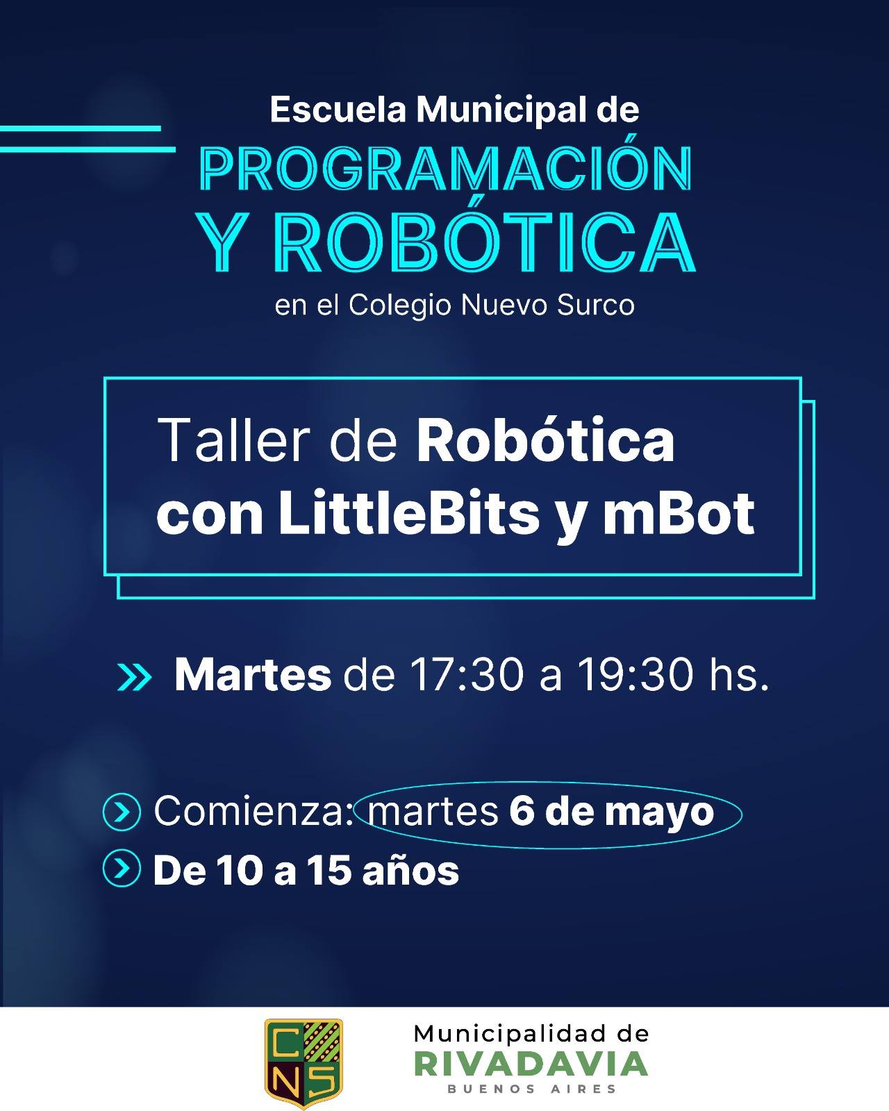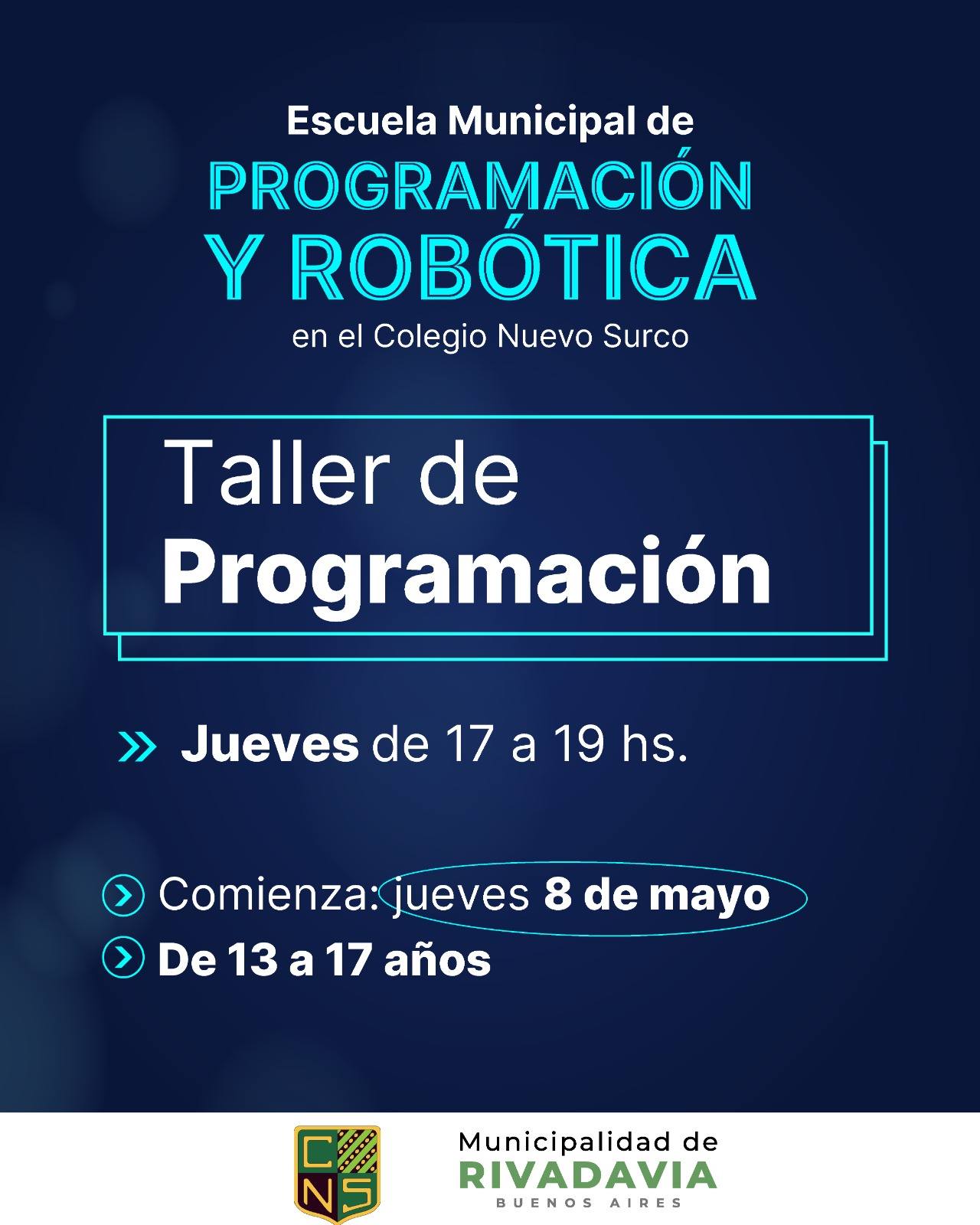 💪🏻👨🏻💻Por segundo año consecutivo, la Municipalidad de Rivadavia invita a ser parte de los talleres gratuitos de la Escuela Municipal de Programación y Robótica, en el Colegio Nuevo Surco.