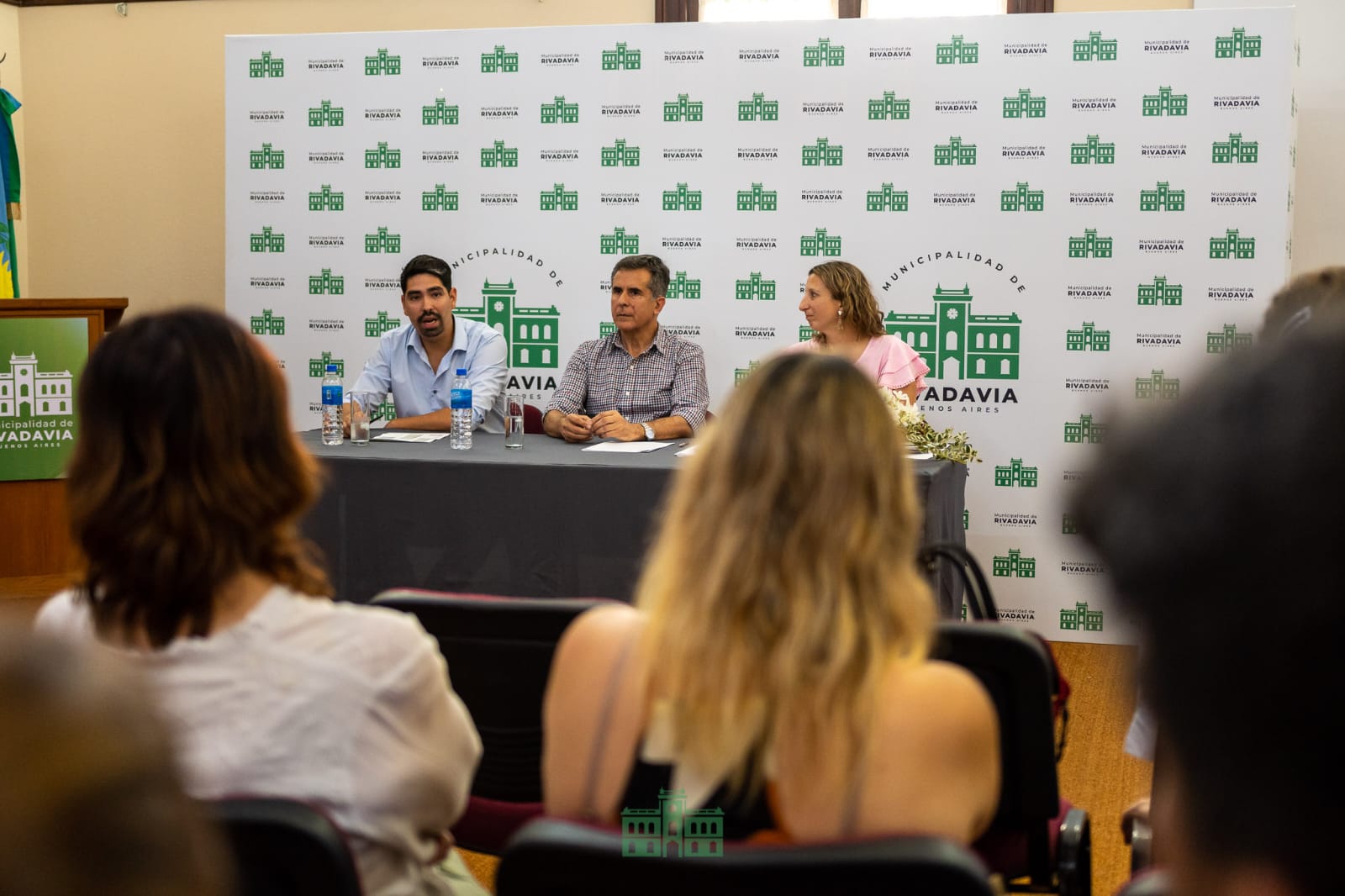 El lunes por la tarde el intendente Juanci Martínez junto a la directora de Educación Municipal, Mercedes García Duperou y el director de Tecnología, Modernización y Desarrollo Emprendedor, Guillermo Acosta, hicieron la presentación del Programa Rivadavia Transformación Digital 2024, a directivos de Escuelas primarias de Rivadavia.