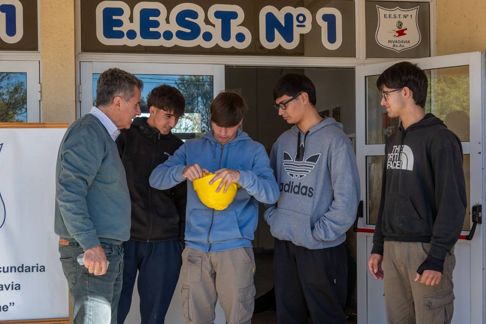 Por tercer año consecutivo, el intendente Juanci Martínez, junto a la directora de Educación, Mercedes García Duperou, entregó elementos de seguridad a estudiantes de 7º año de la Escuela Técnica Nº1 que inician sus prácticas profesionalizantes.