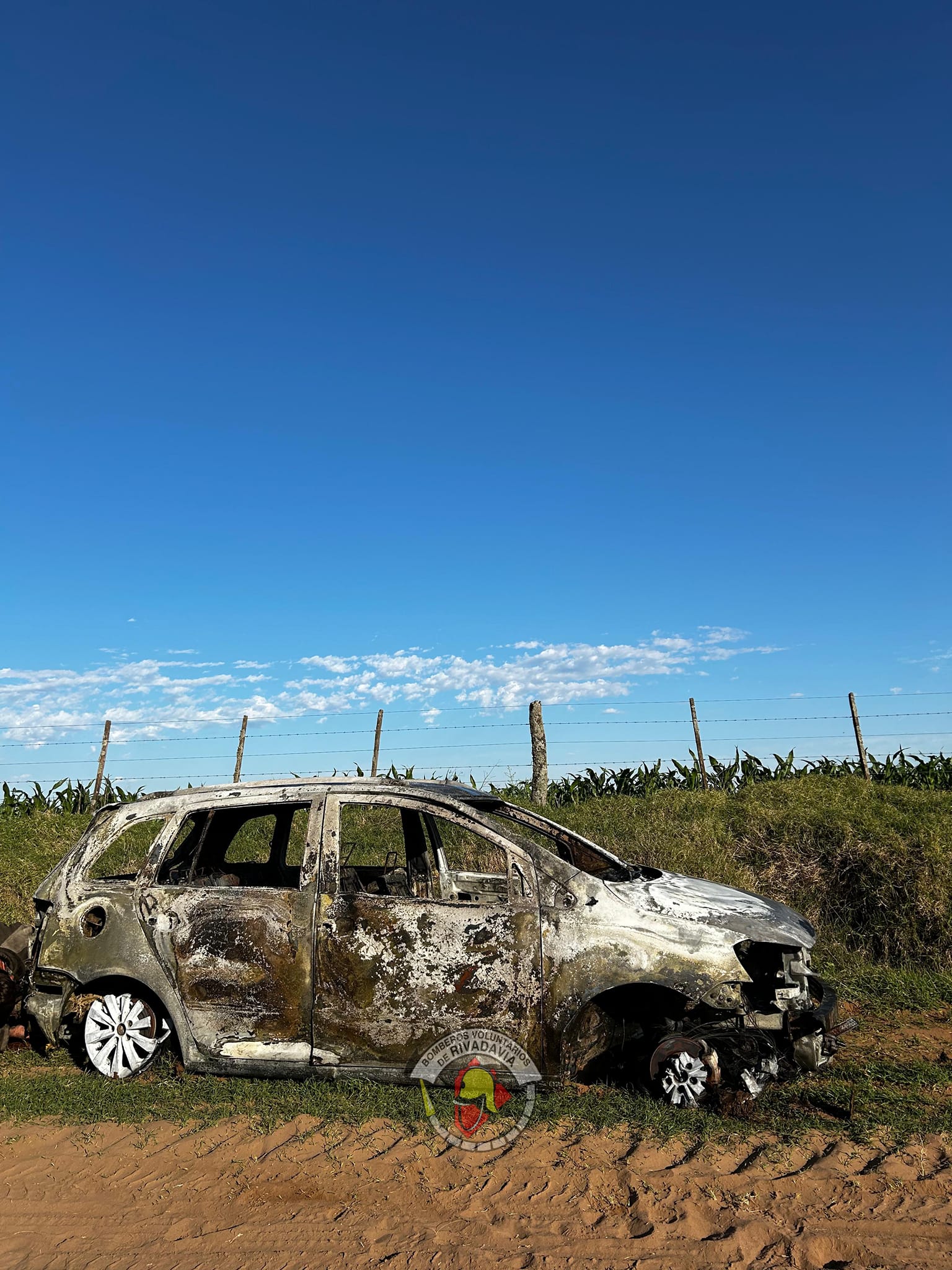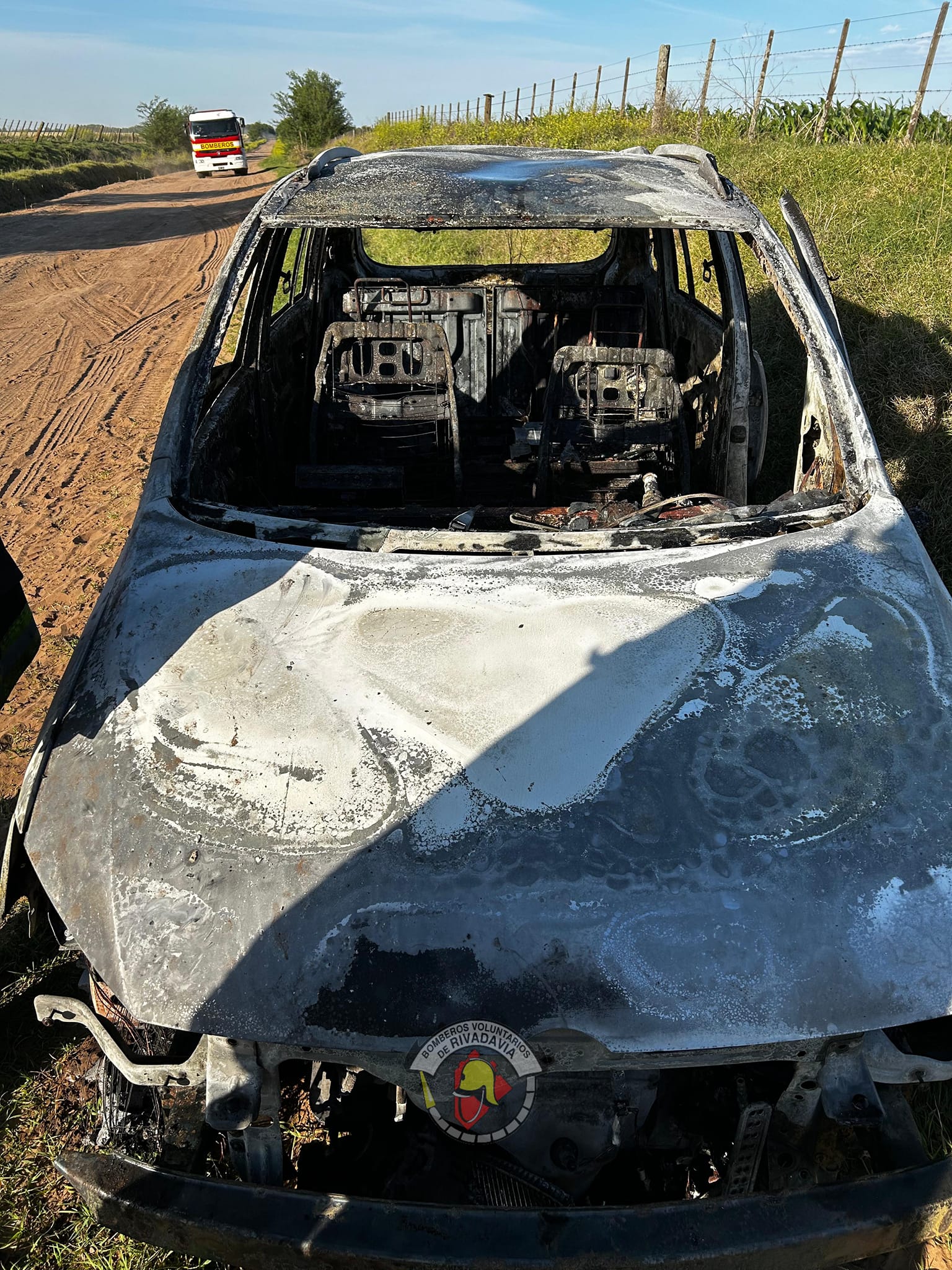 El vehículo Volkswagen Suran se prendió fuego por causas que intentan dilucidar en ese camino rural, en dirección al establecimiento agropecuario “La María Lisa”, cercanía a Cuenca.