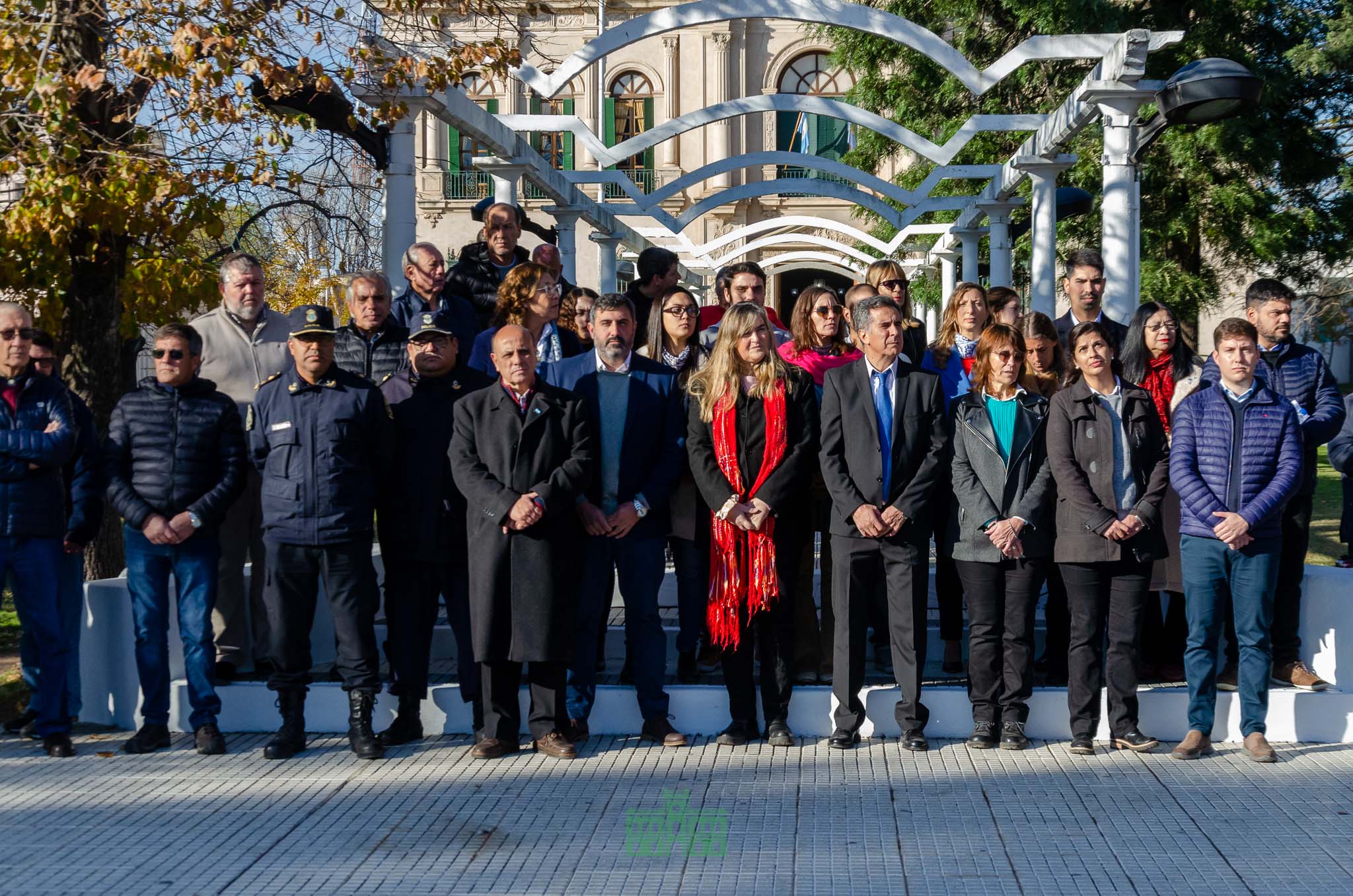 En la mañana del jueves 16/05 se llevó a cabo en plaza Colón el Acto Oficial por el 120º Aniversario de la ciudad de América, encabezado por el Intendente Juanci Martínez, funcionarios municipales, concejales, autoridades educativas, docentes, alumnos y vecinos.
